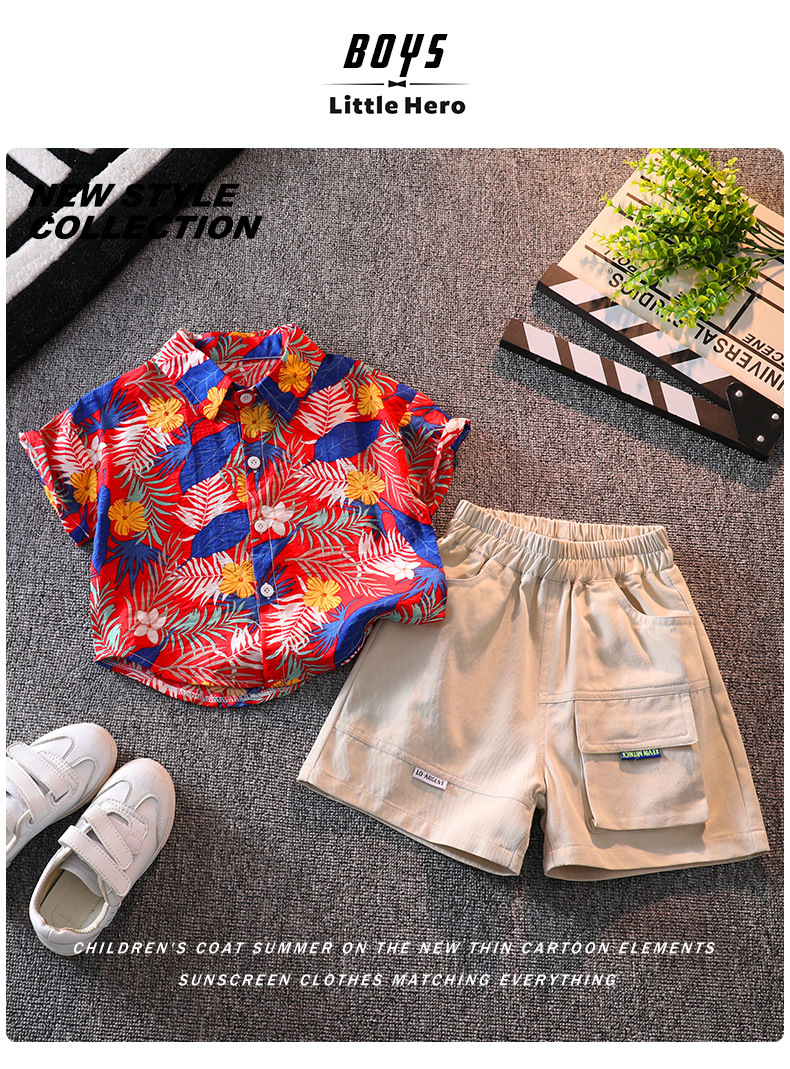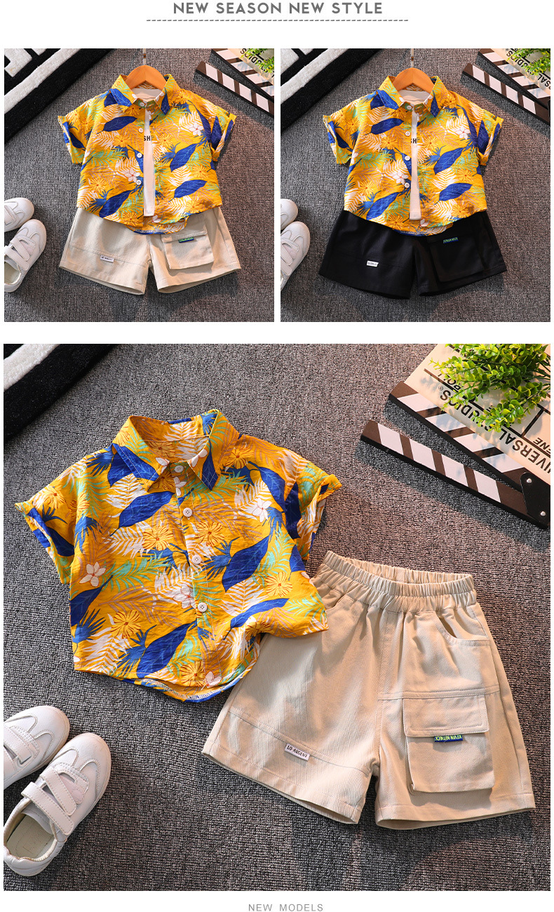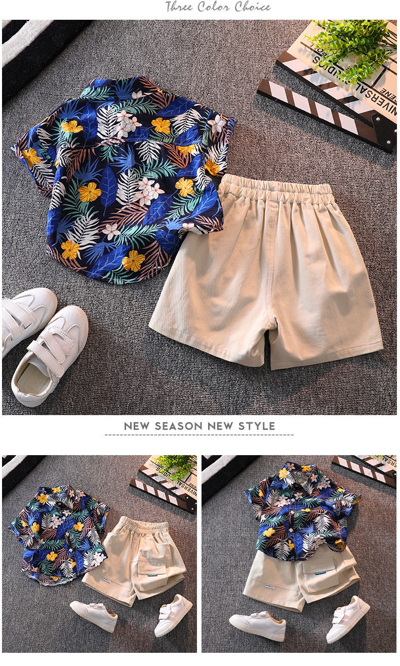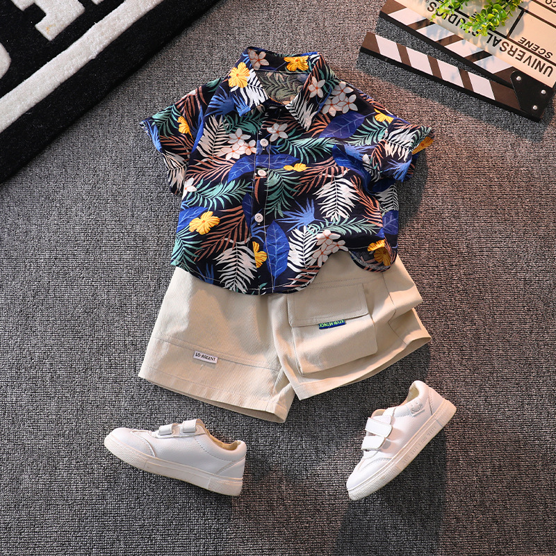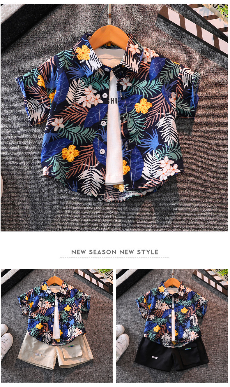 소년 반팔 꽃 셔츠 여름 탑 비치 아기 사이버 연예인 셔츠 하와이안 휴가 어린이 반바지 세트스토어 가기