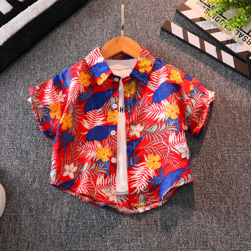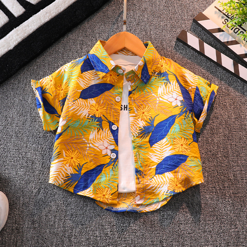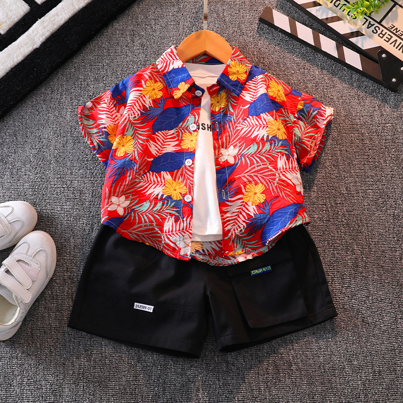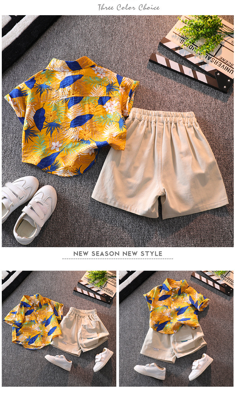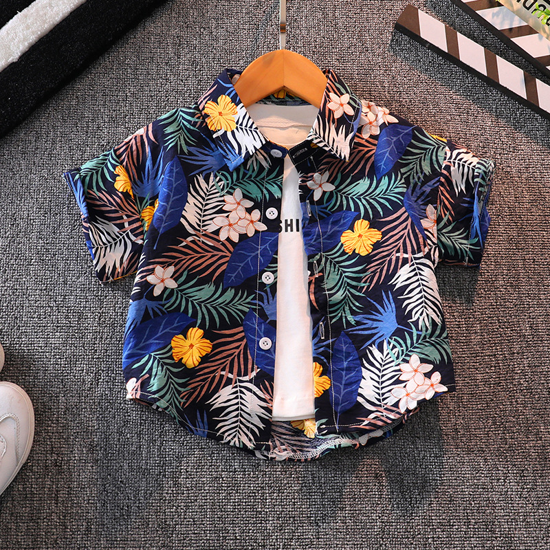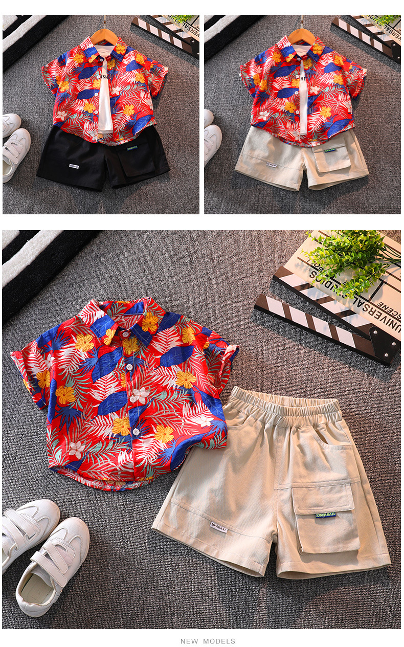 소년 반팔 꽃 셔츠 여름 탑 비치 아기 사이버 연예인 셔츠 하와이안 휴가 어린이 반바지 세트스토어 가기