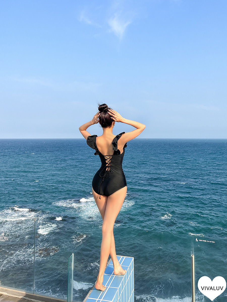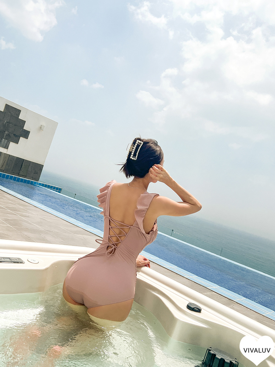소스 팩토리 2023 원피스 수영복 여성용 한국식 단색 섹시 작은 가슴 모여 아름다운 등 슬리밍 휴가 온천스토어 가기