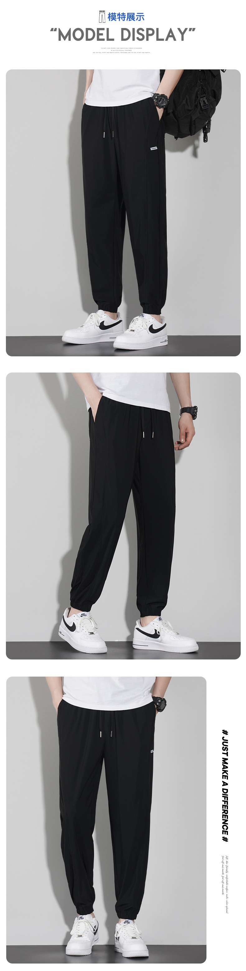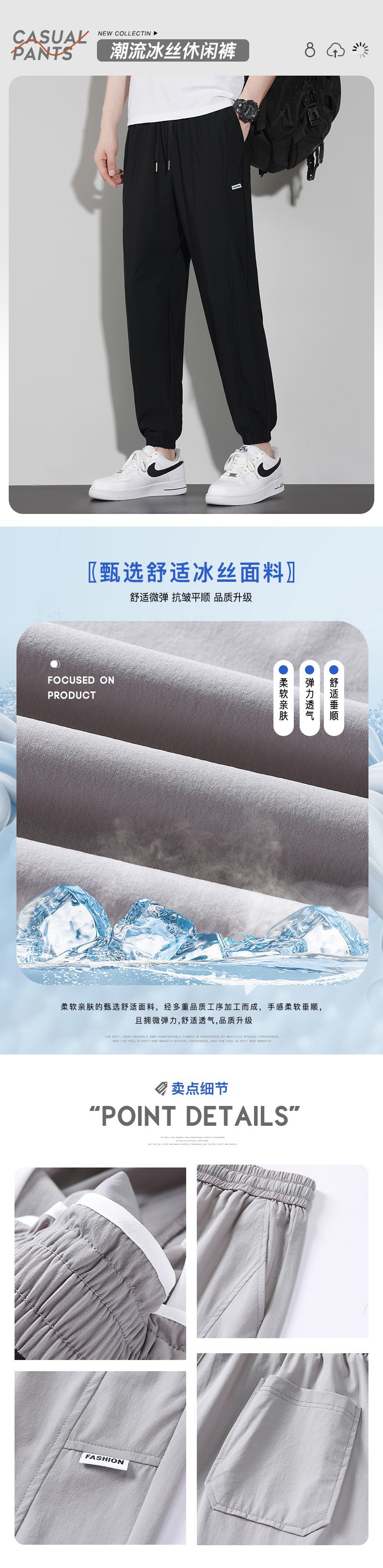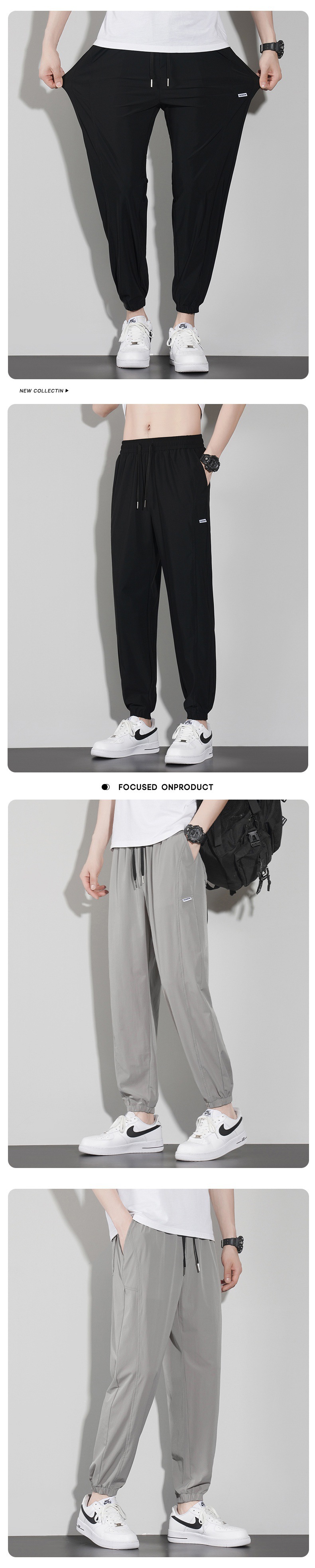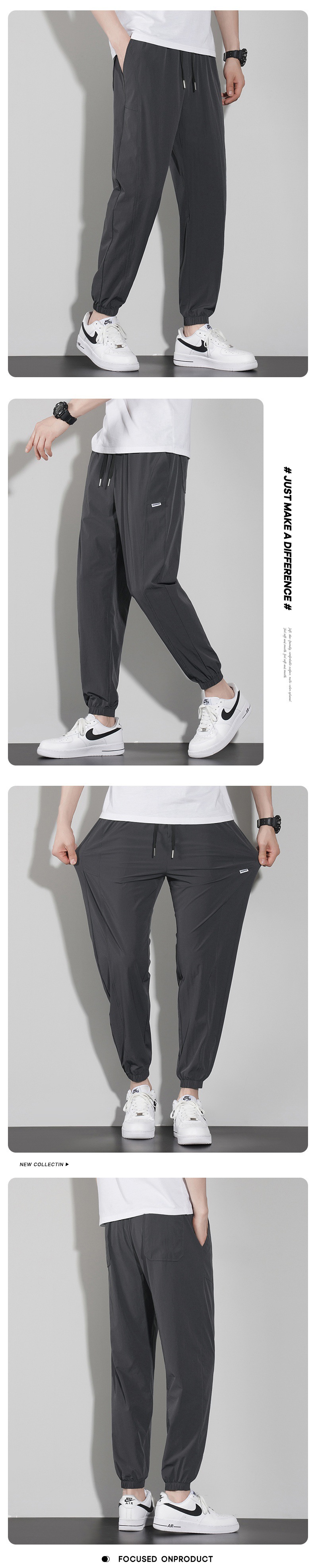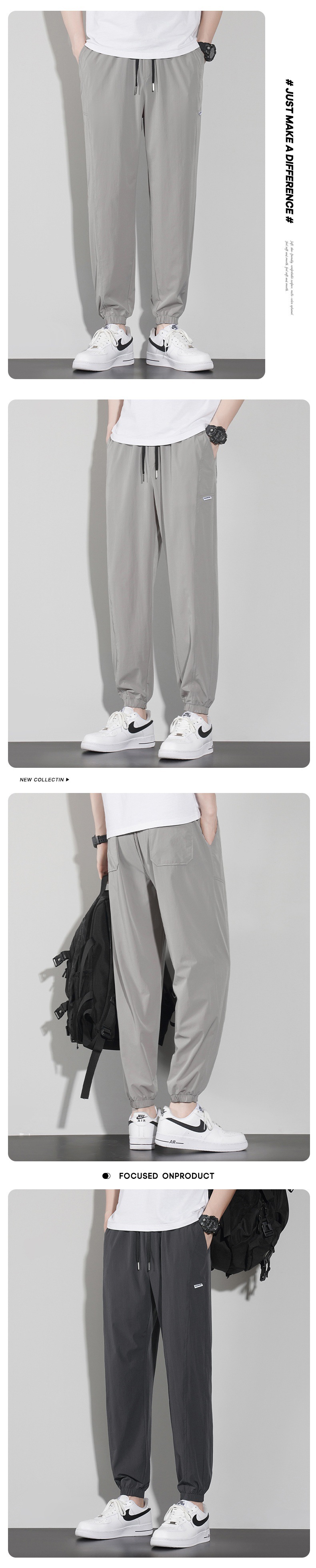 바지 남성 여름 트렌디 브랜드 아이스 실크 얇은 캐주얼 모든 매치 팬츠 여름 남성 스포츠 발 바인딩 크롭 팬츠스토어 가기