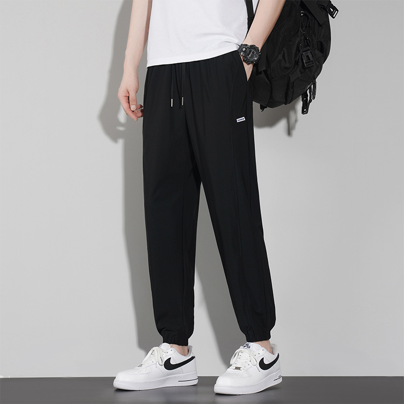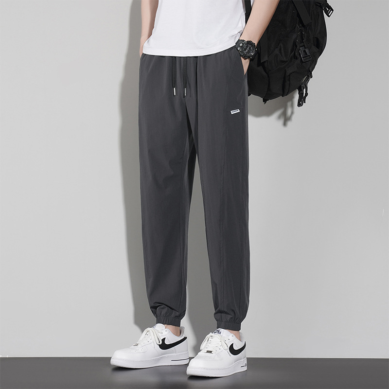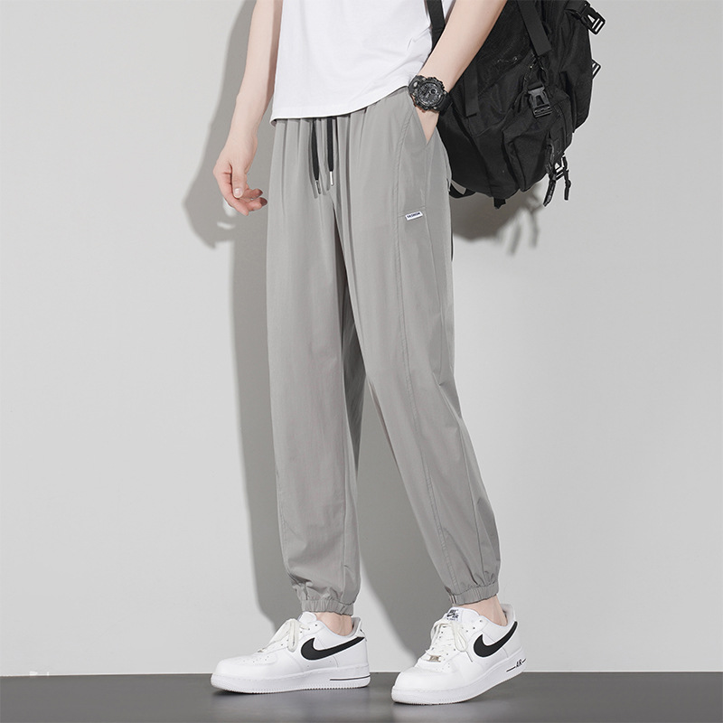 바지 남성 여름 트렌디 브랜드 아이스 실크 얇은 캐주얼 모든 매치 팬츠 여름 남성 스포츠 발 바인딩 크롭 팬츠