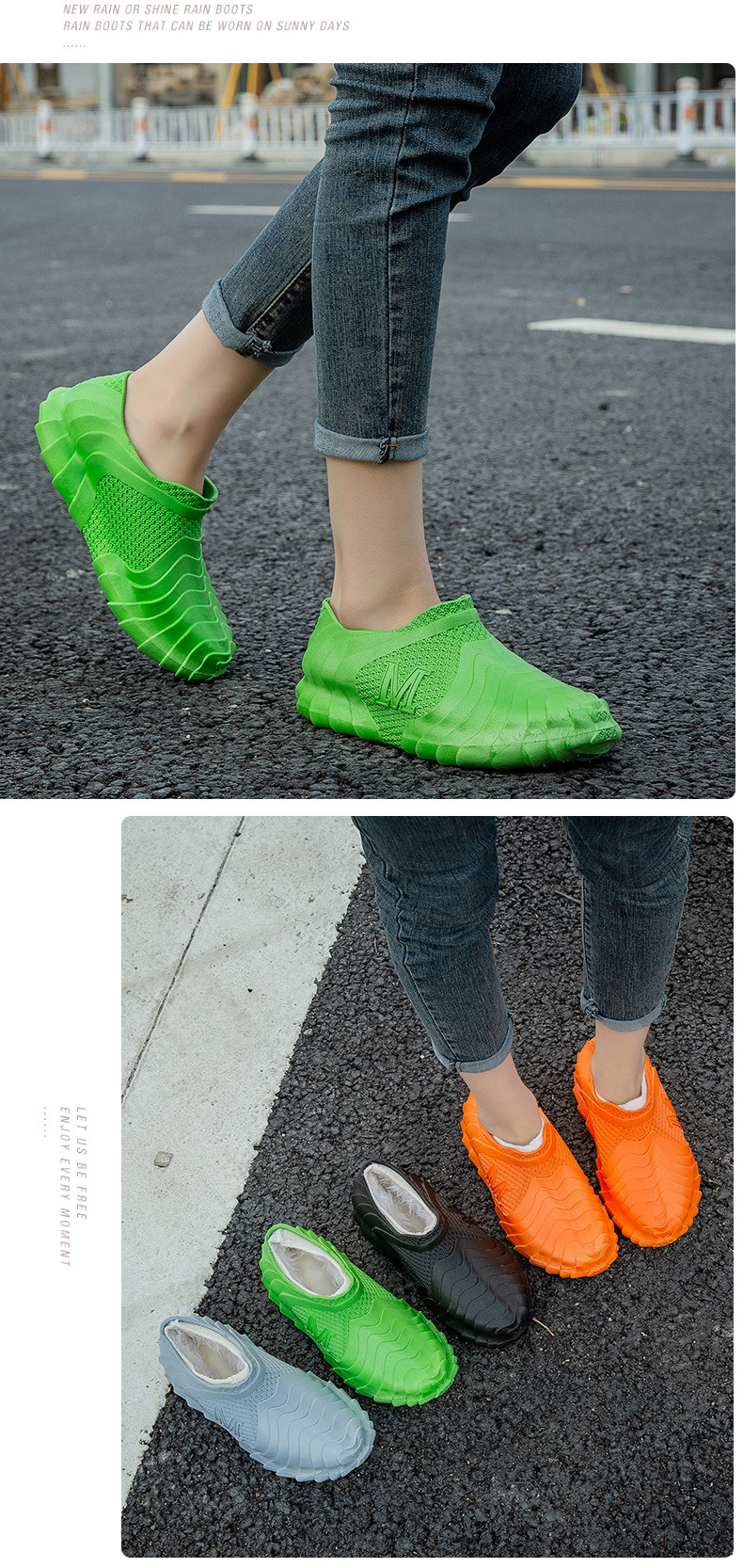 [Daifa] 남성과 여성을위한 로우탑 레인 부츠 새로운 개인화 된 미끄럼 방지 방수 주방 작업 패션 짧은 레인 부츠 경량