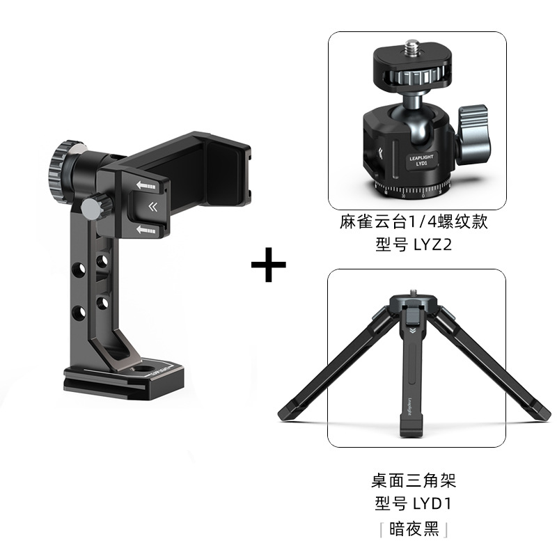 • LYB1 다크 나이트 블랙 회전 휴대폰 홀더 + LYD1 나사형 헤드 + LYZ1 삼각대