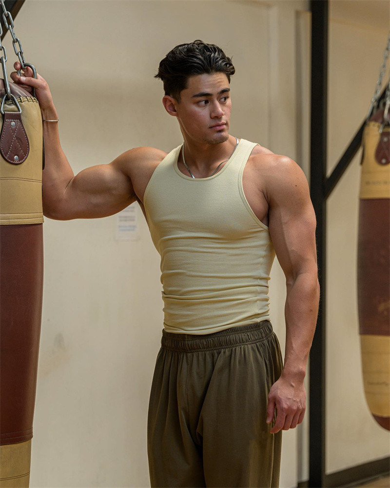 국경 여름 니트 얼음 실크 늑골이있는 피트니스 스포츠 캐주얼 슬림 남성 조끼 남성 I 자형 근육 조끼 남성스토어 가기