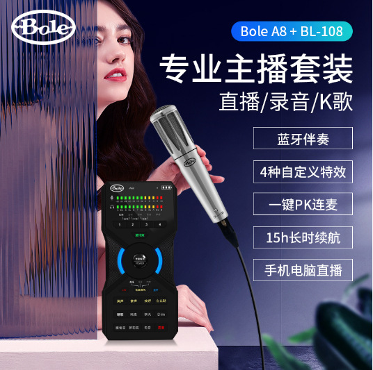 Bole 사운드 Baile A8 사운드 카드 마이크 휴대 전화 라이브 방송 장비 노래 마이크 세트 오리지널 세트 풀 세트