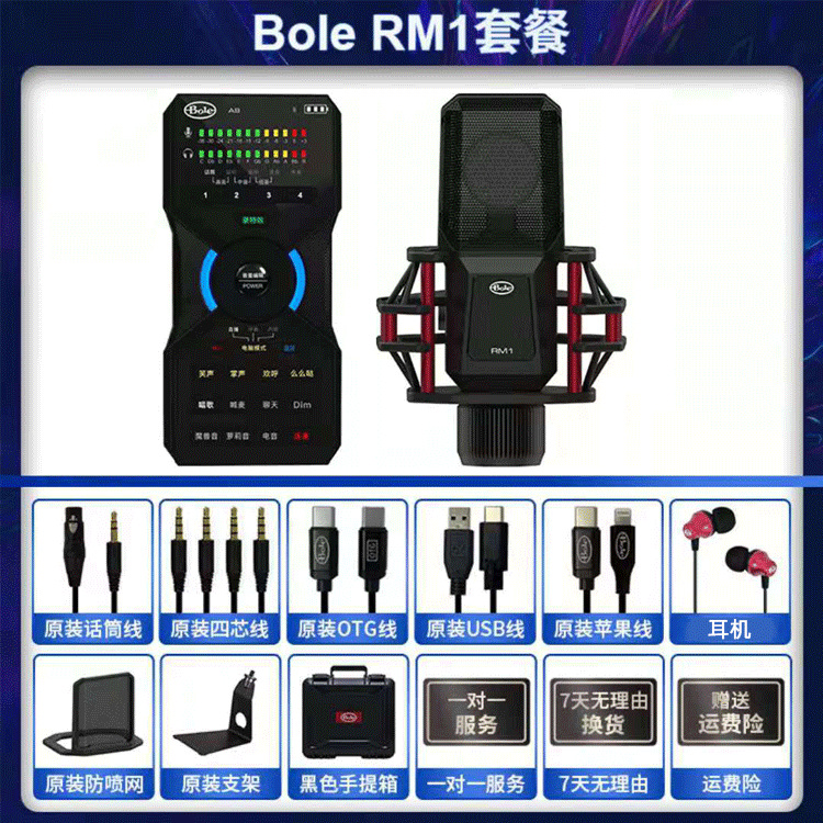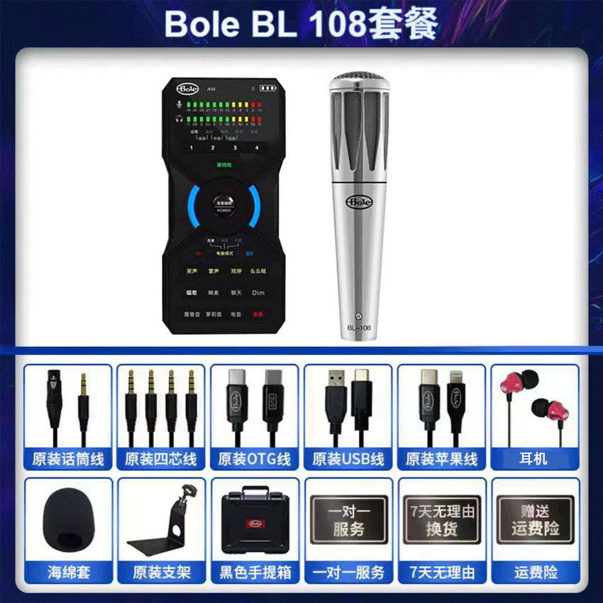 Bole 사운드 Baile A8 사운드 카드 마이크 휴대 전화 라이브 방송 장비 노래 마이크 세트 오리지널 세트 풀 세트스토어 가기