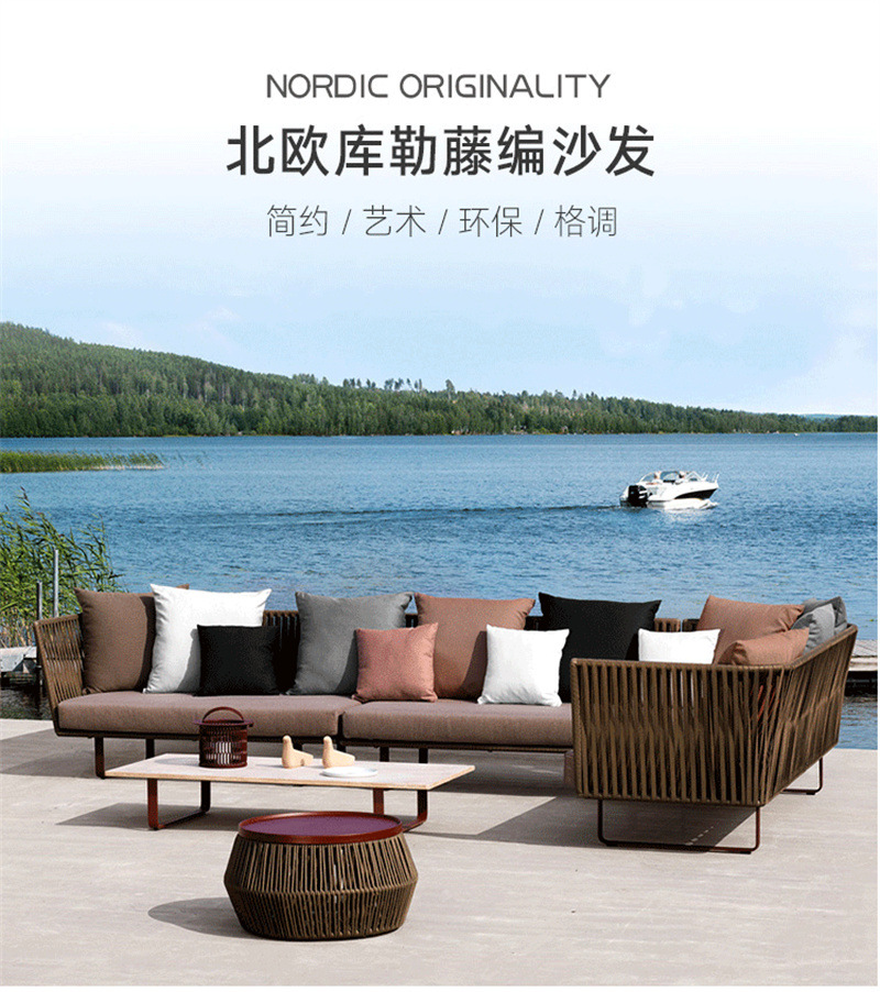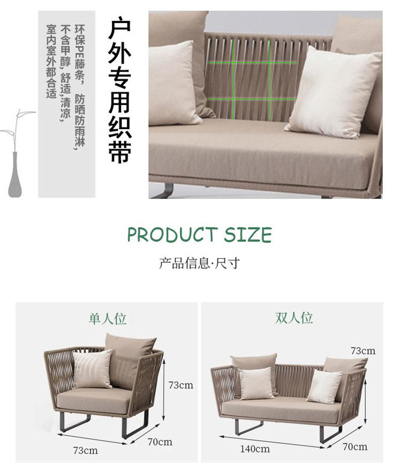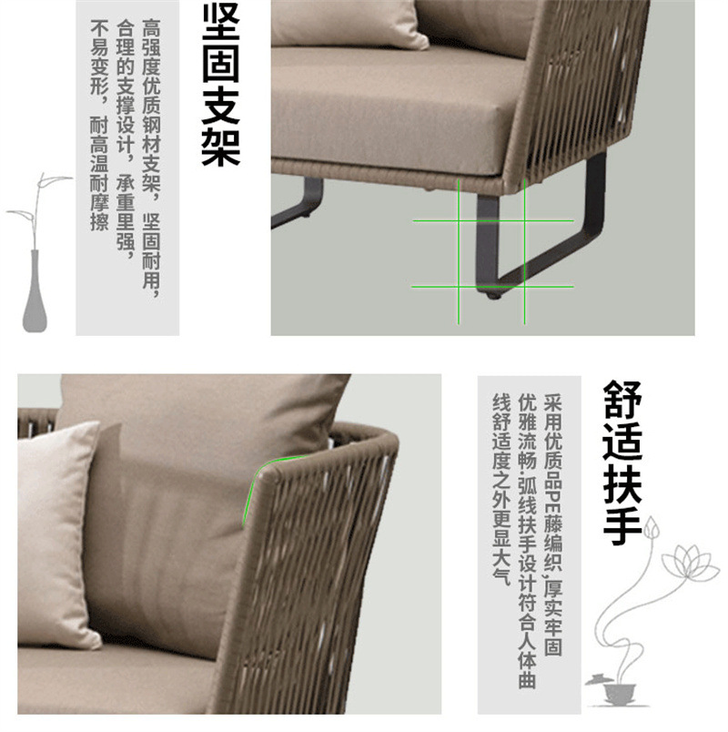 야외 간단한 소파 조합 안뜰 야외 발코니 등나무 소파 의자 레저 커피 테이블 3 피스 가구스토어 가기