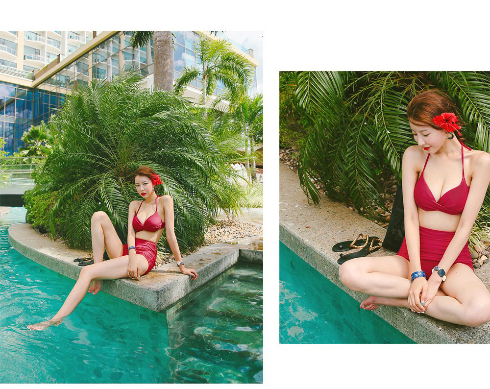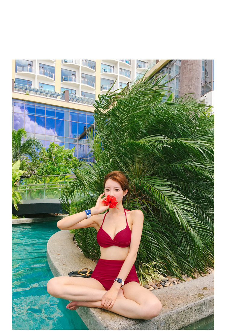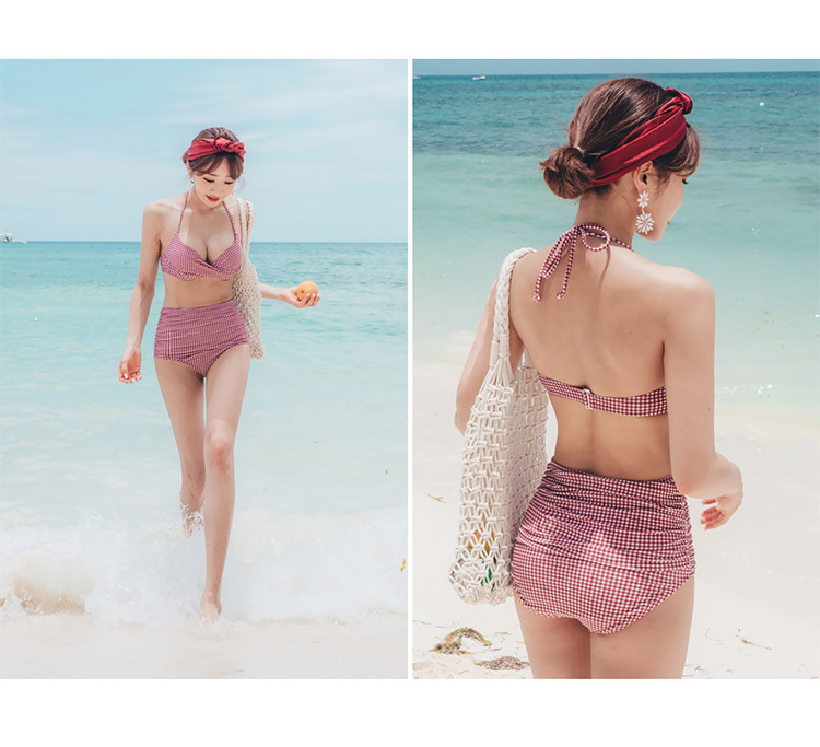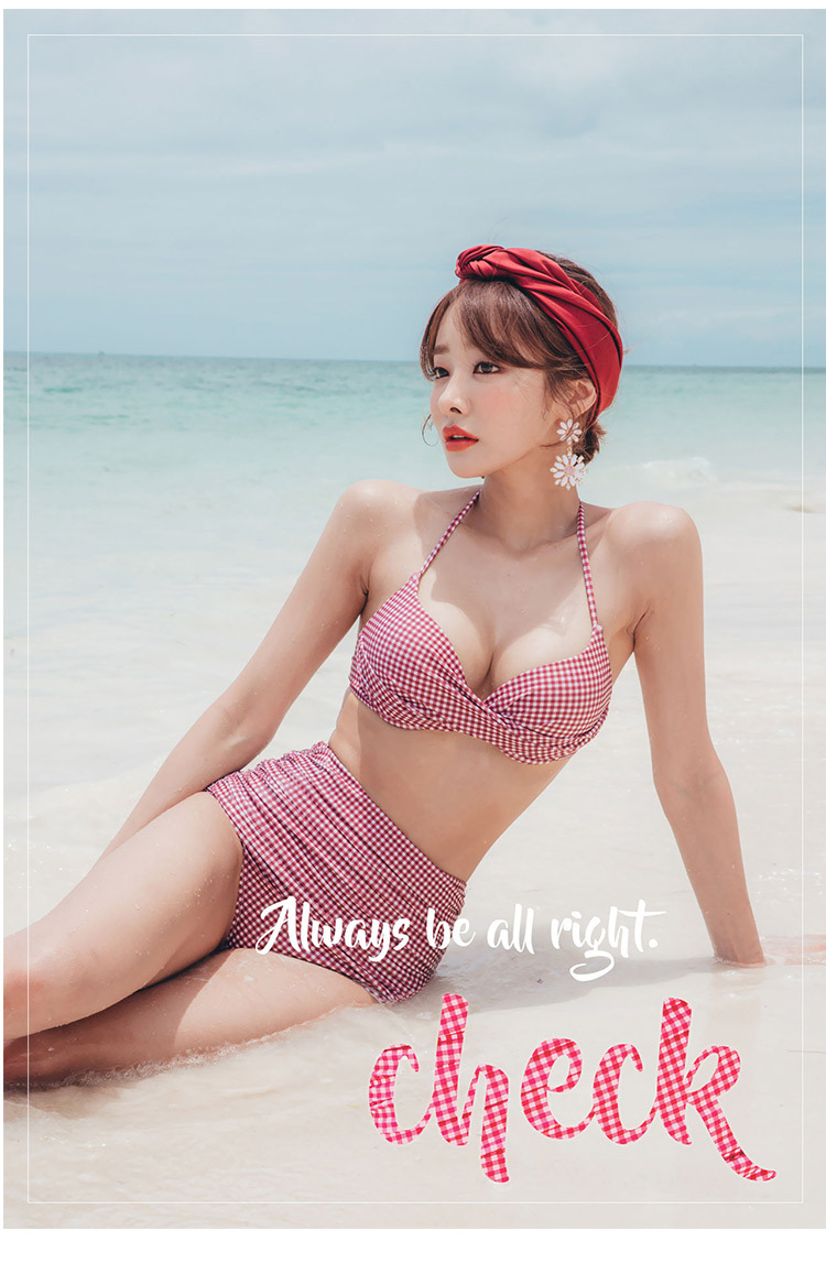 섹시한 여자의 비키니 투피스 스플릿 하이 웨이스트 브리프 수영복 크기 가슴 푸시 업 비키니 수영복