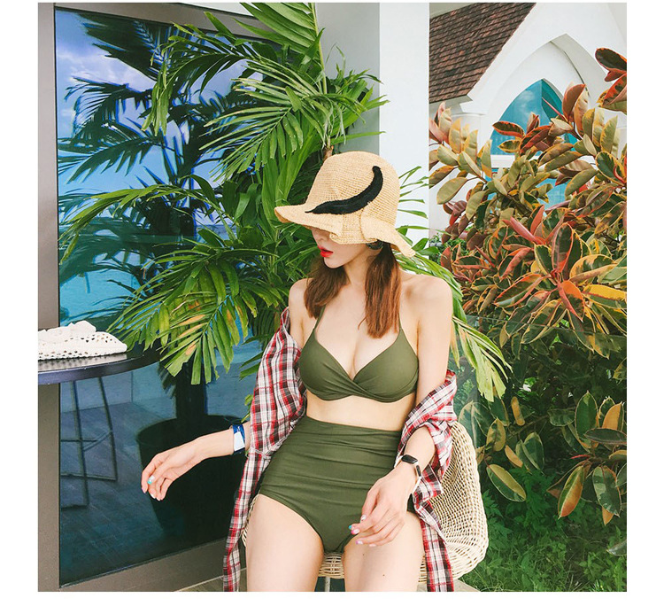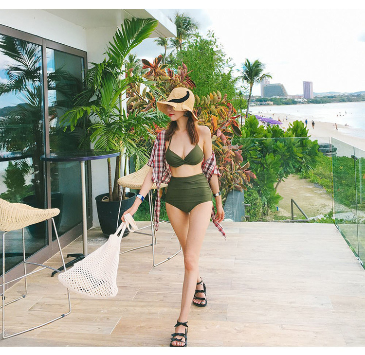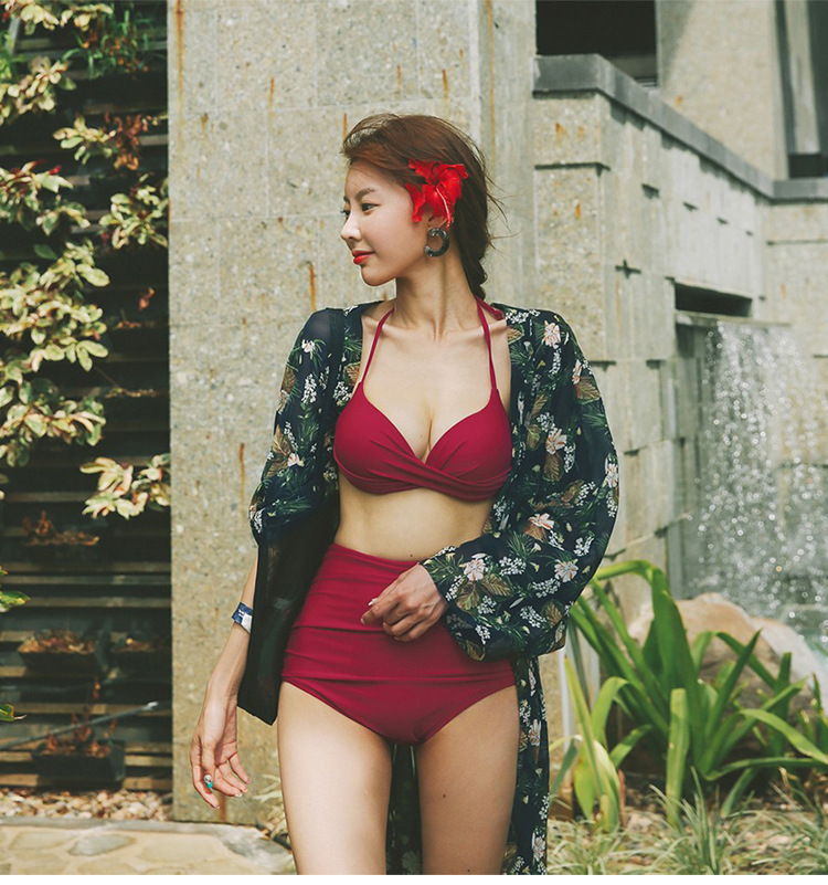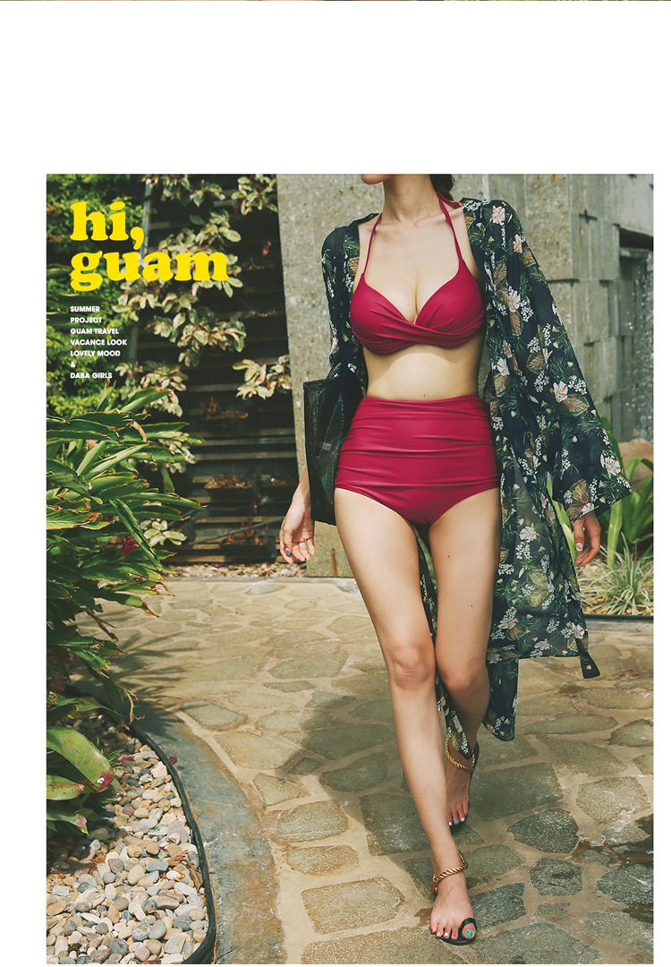 섹시한 여자의 비키니 투피스 스플릿 하이 웨이스트 브리프 수영복 크기 가슴 푸시 업 비키니 수영복스토어 가기