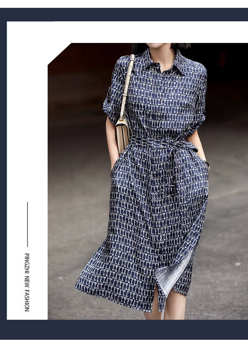 헤비급 실크 능직 셔츠 드레스 하이 엔드 뽕나무 실크 드레스 2025 여성 꽃 무늬 롱 스커트 여름스토어 가기