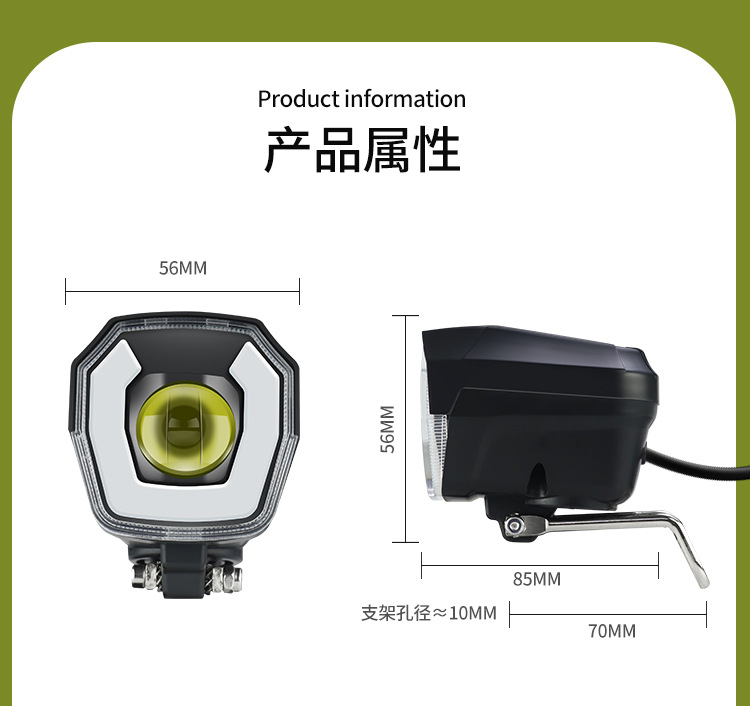 운전 등 경적 24V-60V 범용 리튬 스쿠터 2 in 1 접이식 전기 자동차 헤드 라이트 주도