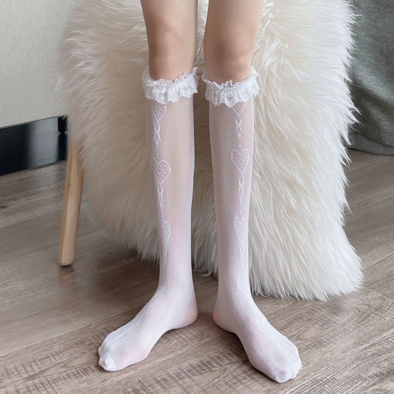 • BC-2429 나비 레이스 롱 스타킹 화이트