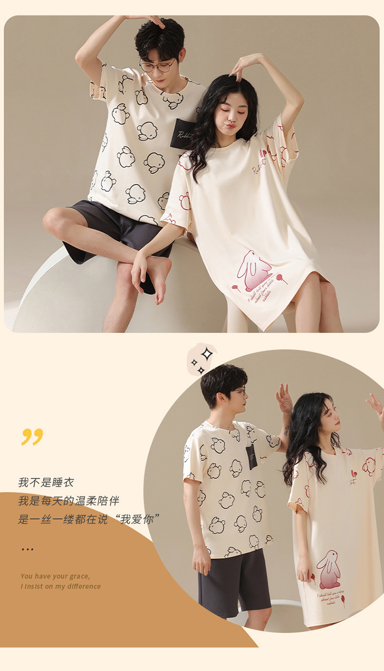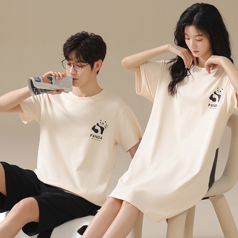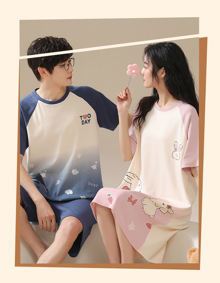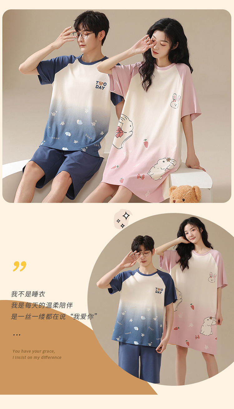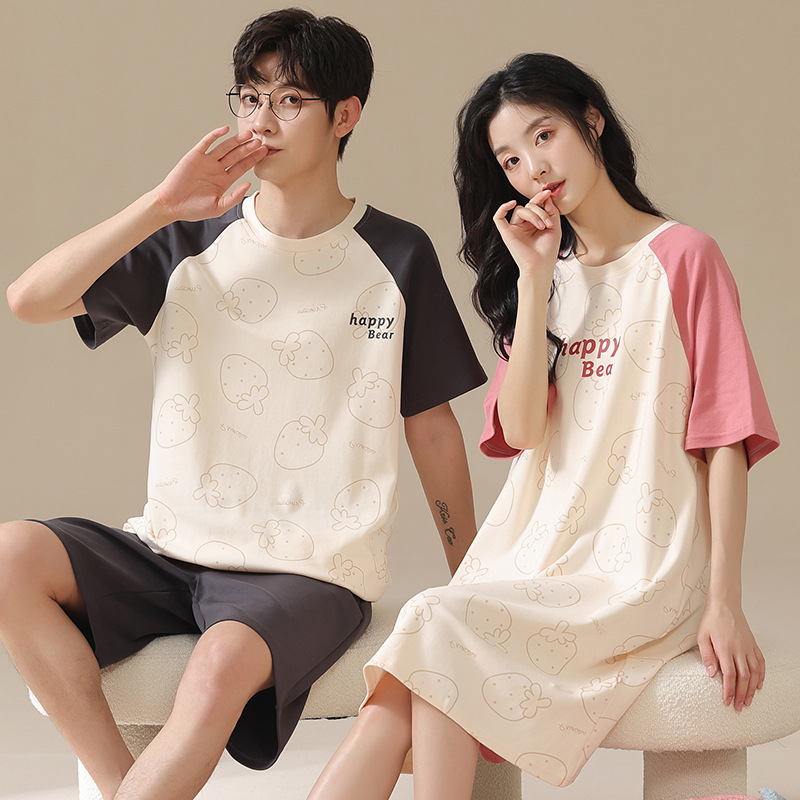 커플 잠옷 남자의 세트 여자의 치마 여름 겉옷을 입고 새로운 면 짧은 소매 여름 얇은 가정 옷 세트