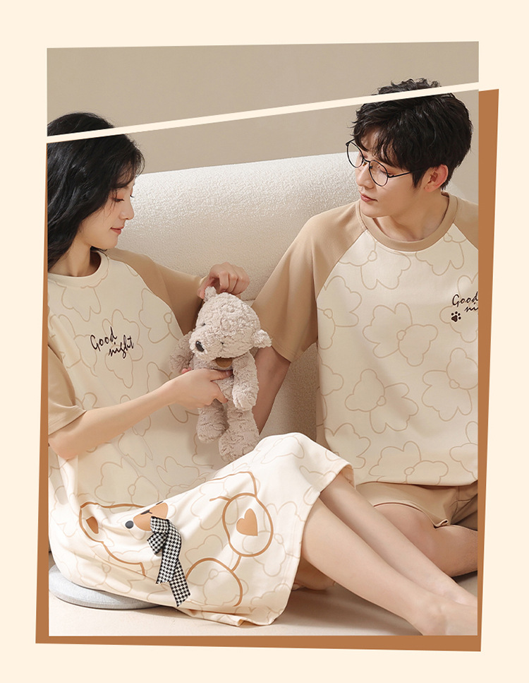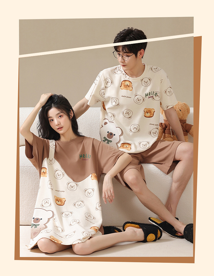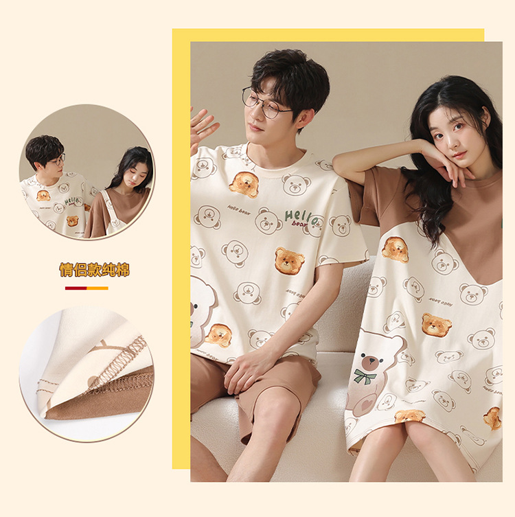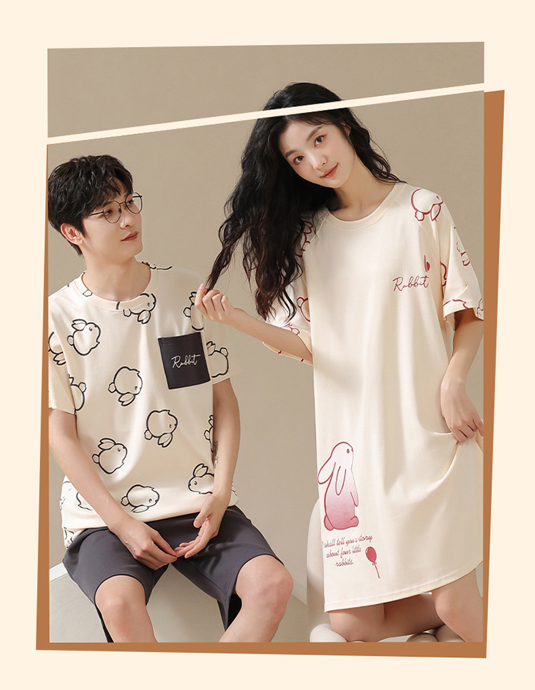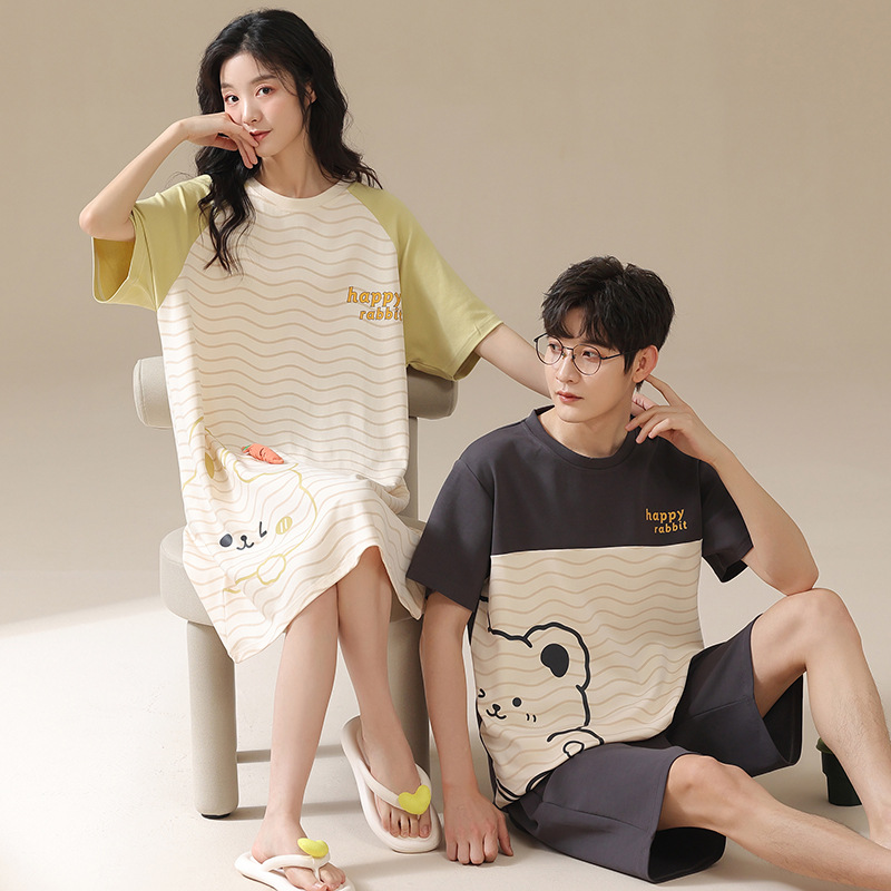 커플 잠옷 남자의 세트 여자의 치마 여름 겉옷을 입고 새로운 면 짧은 소매 여름 얇은 가정 옷 세트