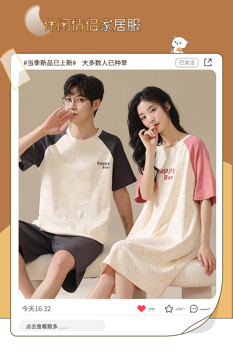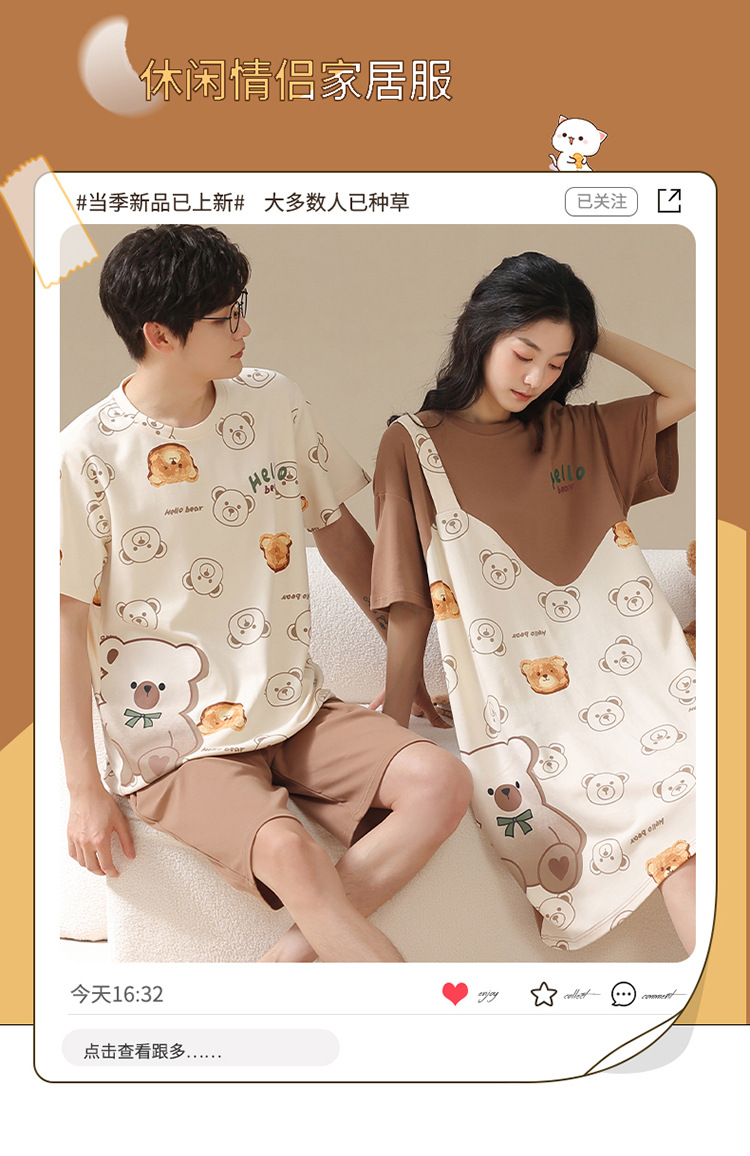 커플 잠옷 남자의 세트 여자의 치마 여름 겉옷을 입고 새로운 면 짧은 소매 여름 얇은 가정 옷 세트스토어 가기