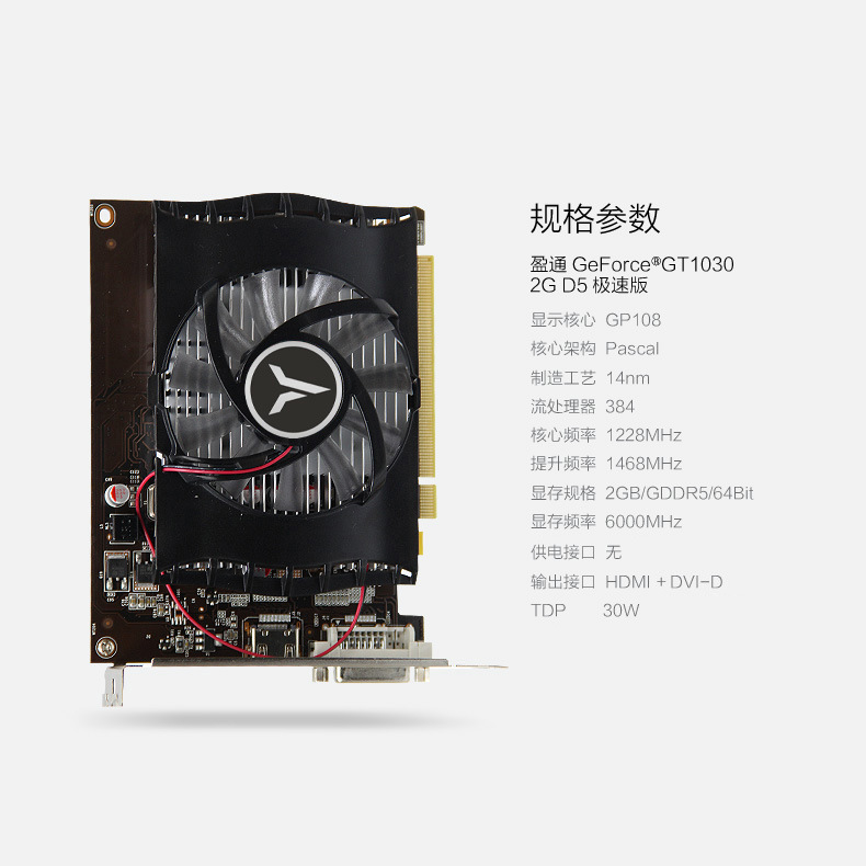 적용 가능한 데스크톱 Yingtong GT1030 2G D5 대형 카드 독립 그래픽 카드 홈 오피스 그래픽 카드스토어 가기
