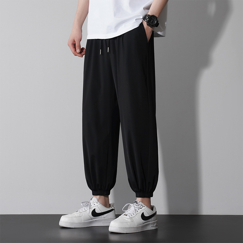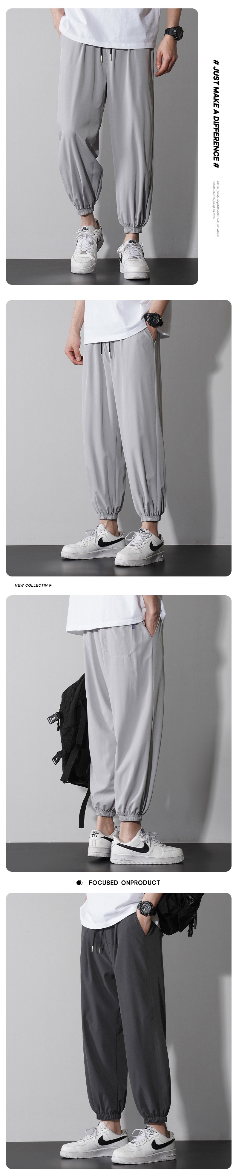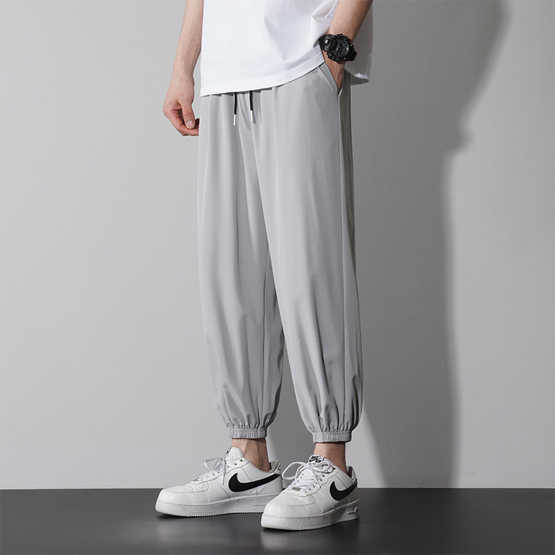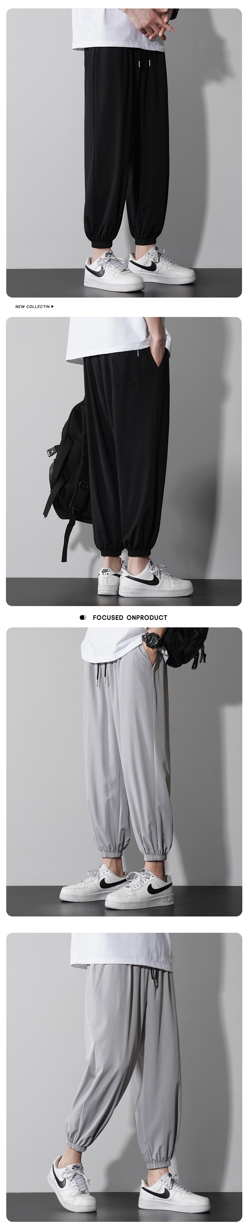 아이스 실크 바지 남성용 여름 얇은 트렌디 브랜드 다리 느슨한 발목 길이 바지 스포츠 바지 십대를위한 모든 매치 캐주얼 바지스토어 가기