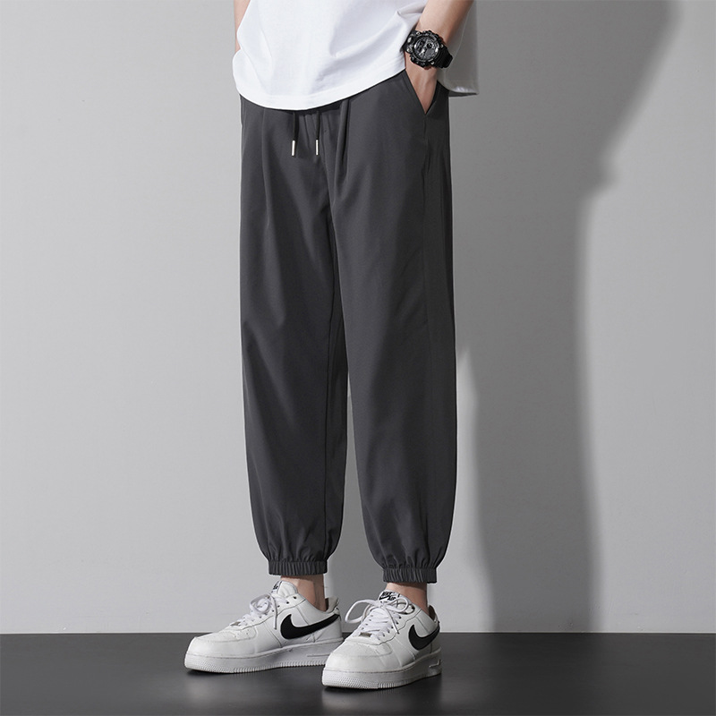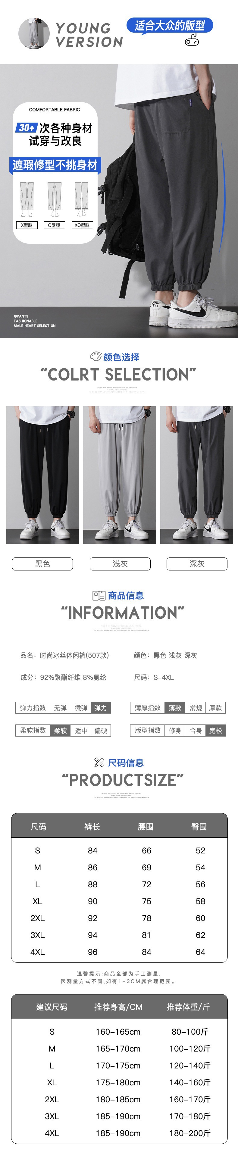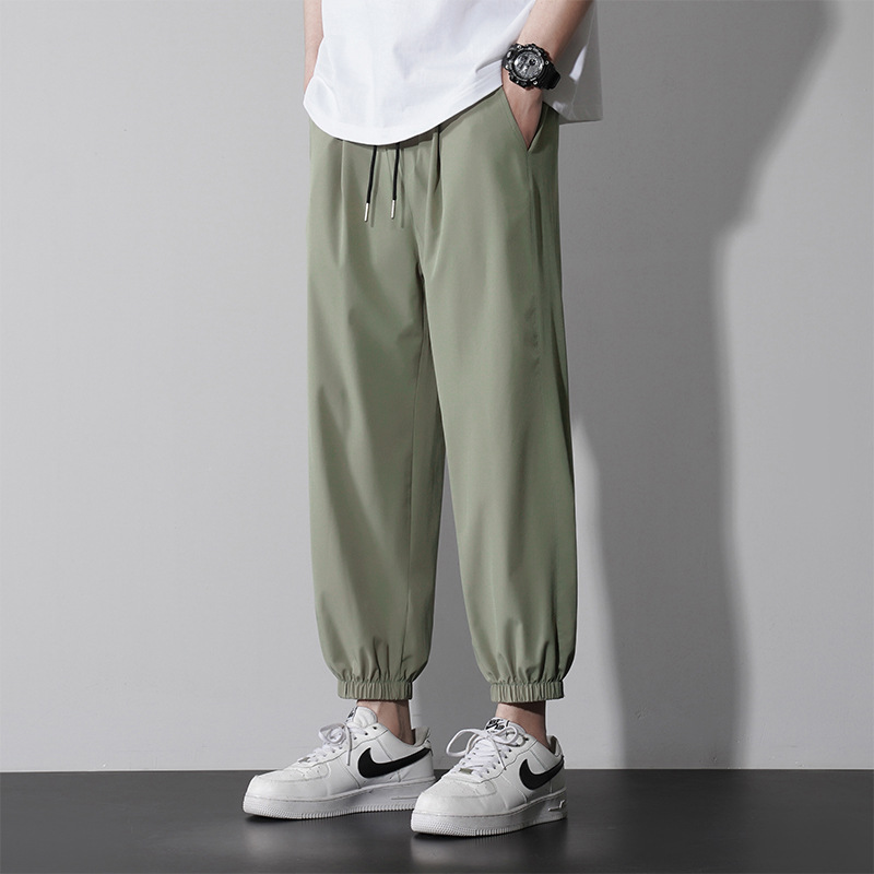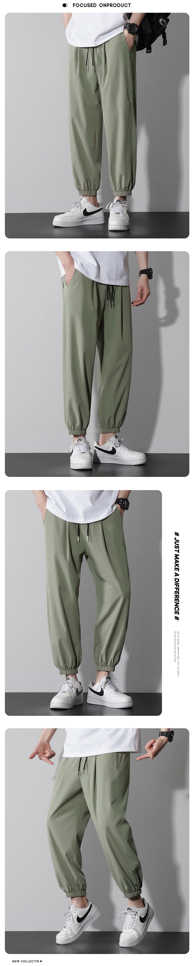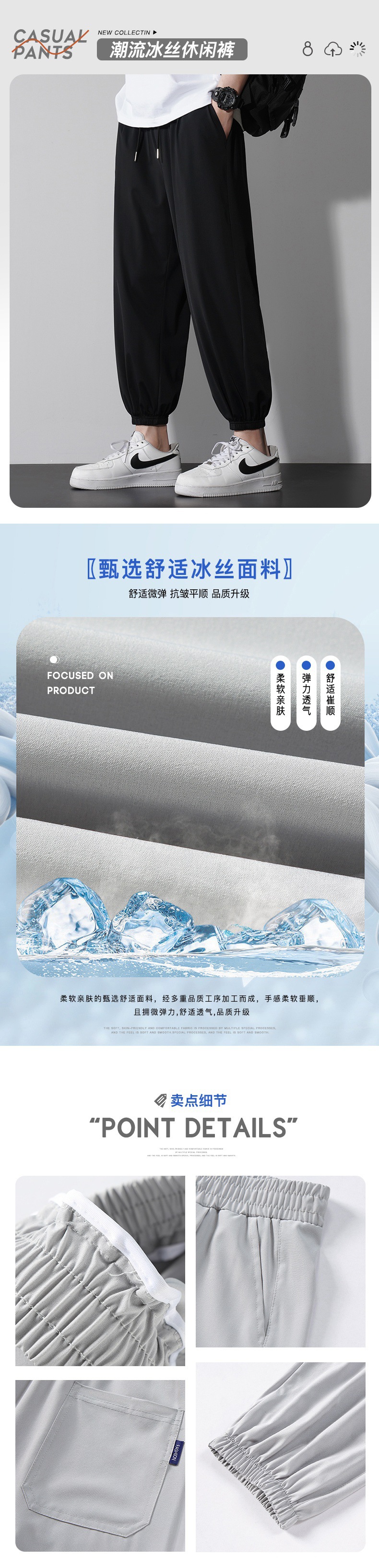 아이스 실크 바지 남성용 여름 얇은 트렌디 브랜드 다리 느슨한 발목 길이 바지 스포츠 바지 십대를위한 모든 매치 캐주얼 바지스토어 가기