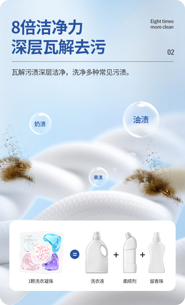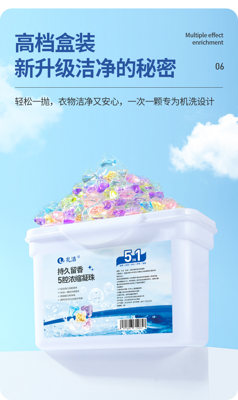 8g洗衣凝珠50颗盒装家庭装浓缩持久留香洗衣散珠批发厂家