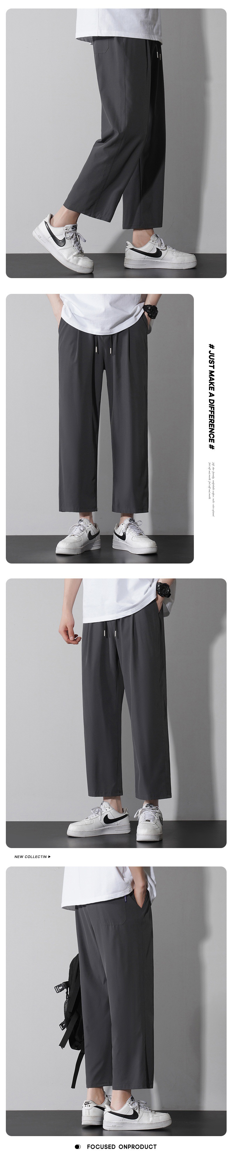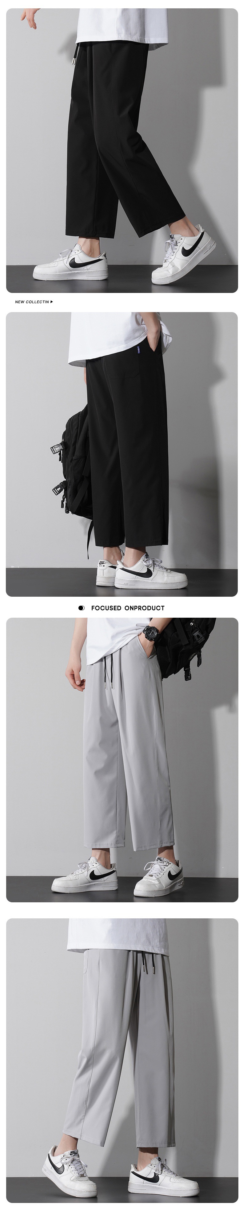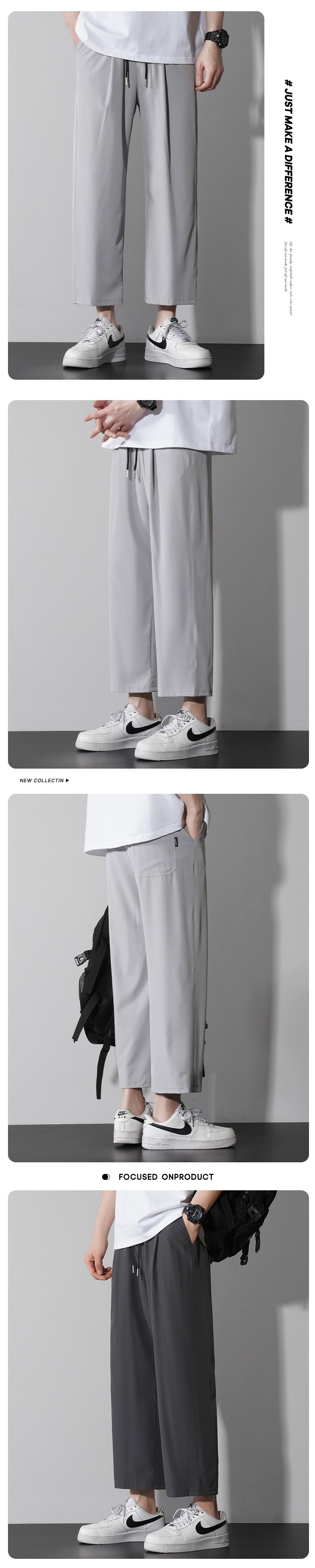 새 남성 바지 2023 여름 아이스 실크 바지 한국 스타일 트렌디 하라주쿠 스타일 느슨한 스트레이트 드레이핑 속건 캐주얼 바지스토어 가기