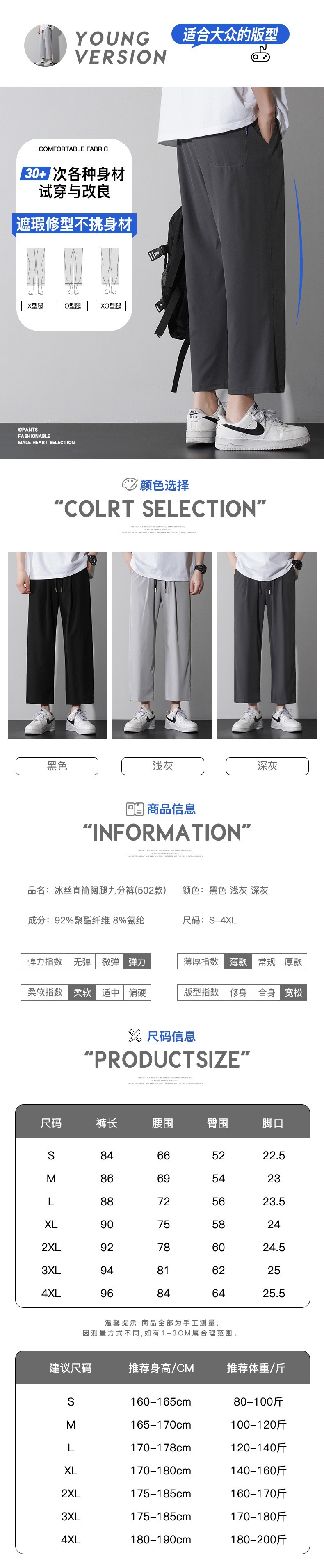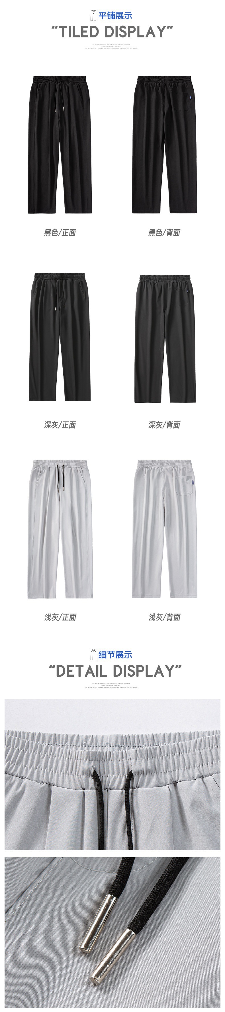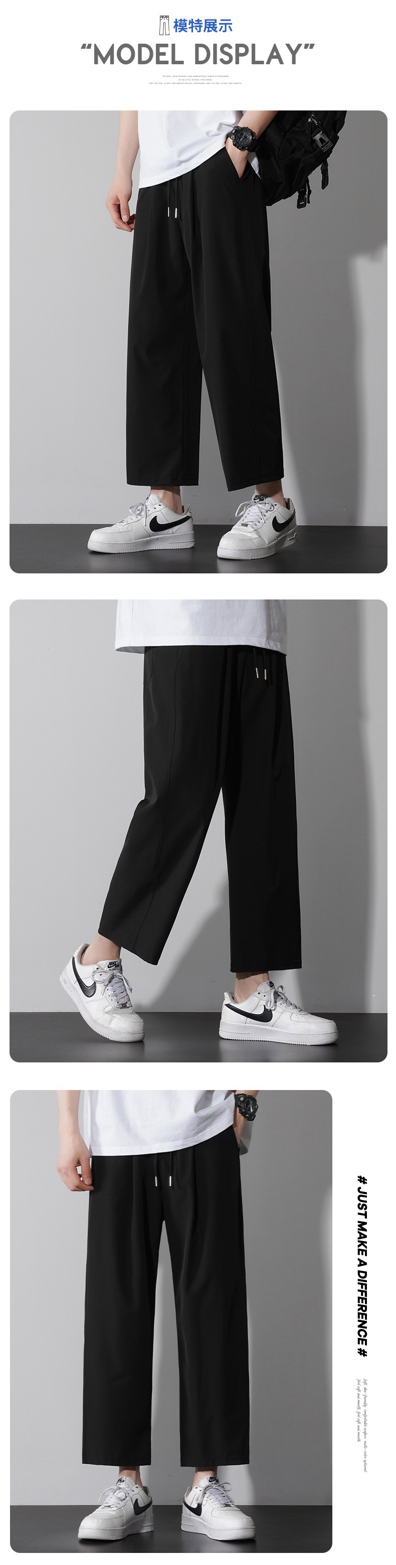 새 남성 바지 2023 여름 아이스 실크 바지 한국 스타일 트렌디 하라주쿠 스타일 느슨한 스트레이트 드레이핑 속건 캐주얼 바지스토어 가기