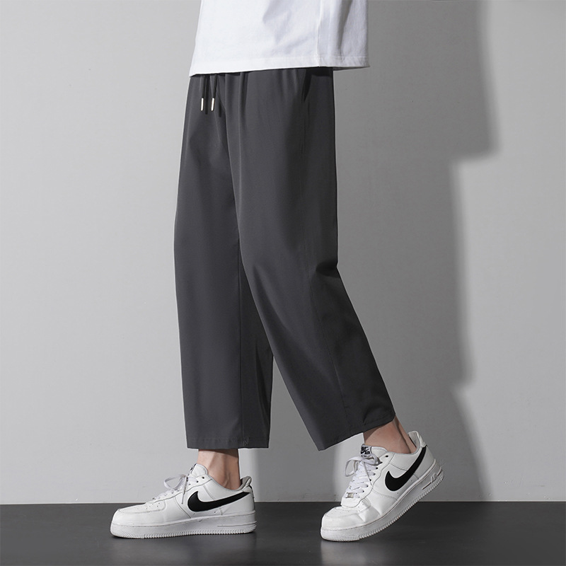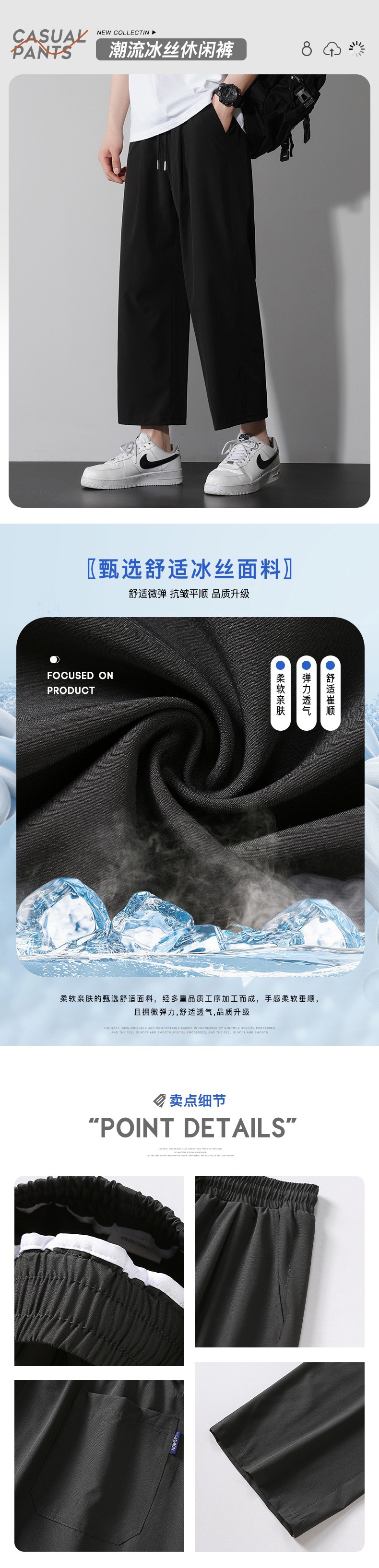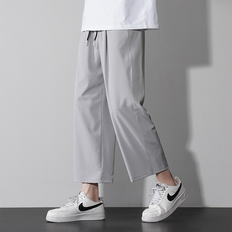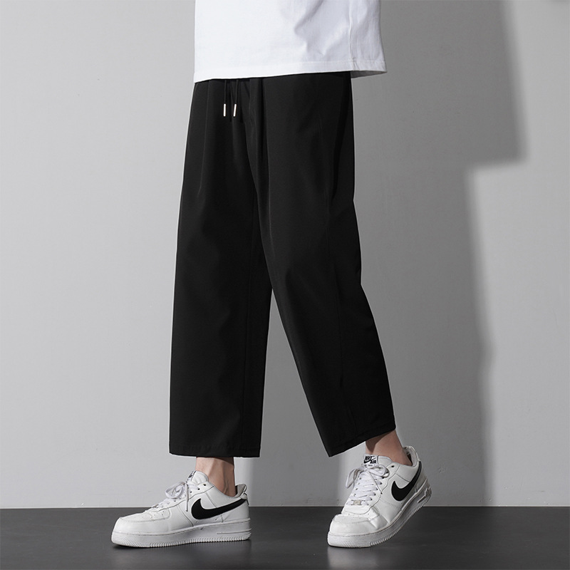새 남성 바지 2023 여름 아이스 실크 바지 한국 스타일 트렌디 하라주쿠 스타일 느슨한 스트레이트 드레이핑 속건 캐주얼 바지