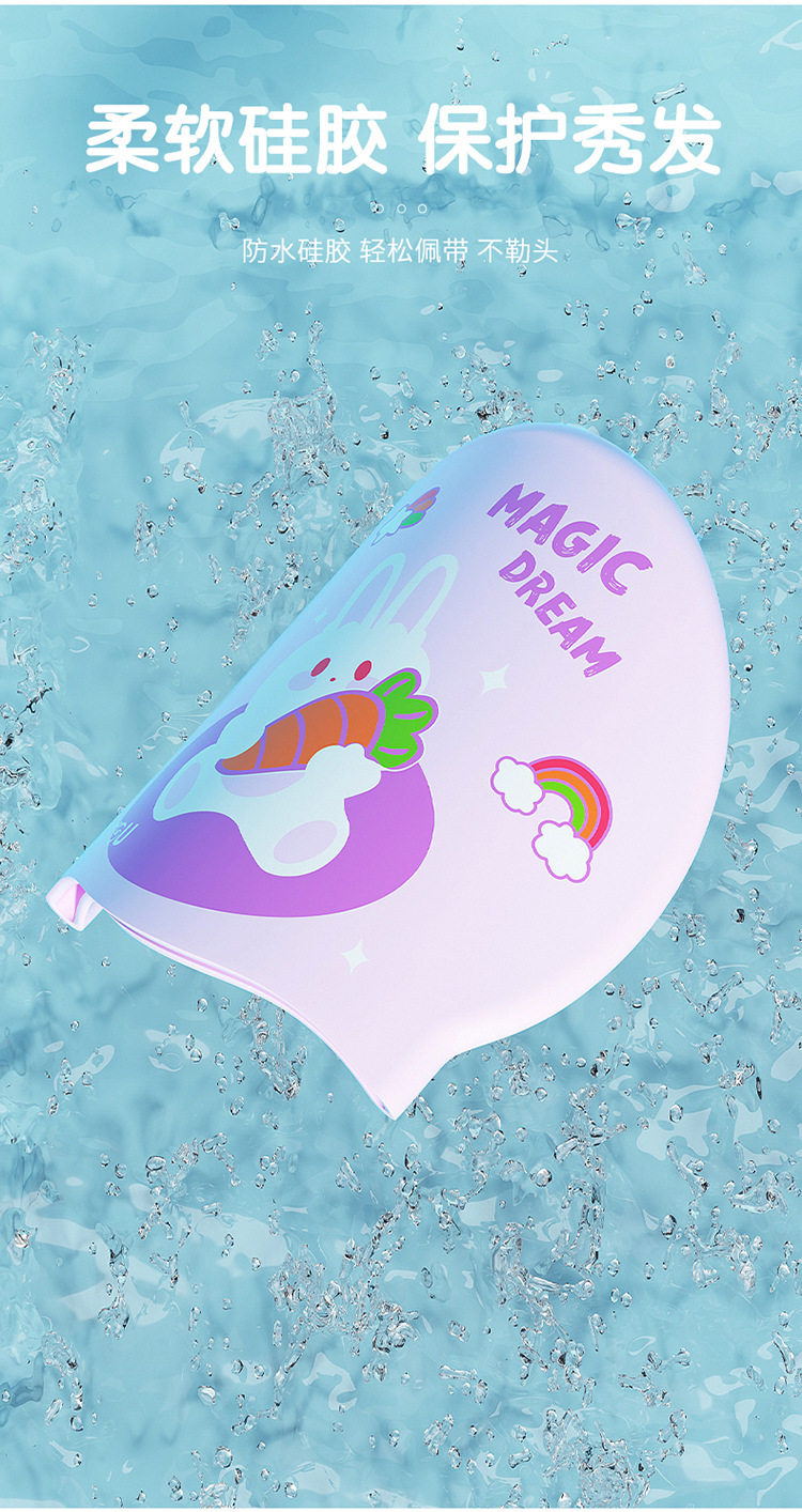 어린이 수영 모자 실리콘 만화 귀여운 다양한 색상 소형 중형 및 대형 어린이 긴 머리 귀 관리 헤어 케어 부드러운 수영 모자
