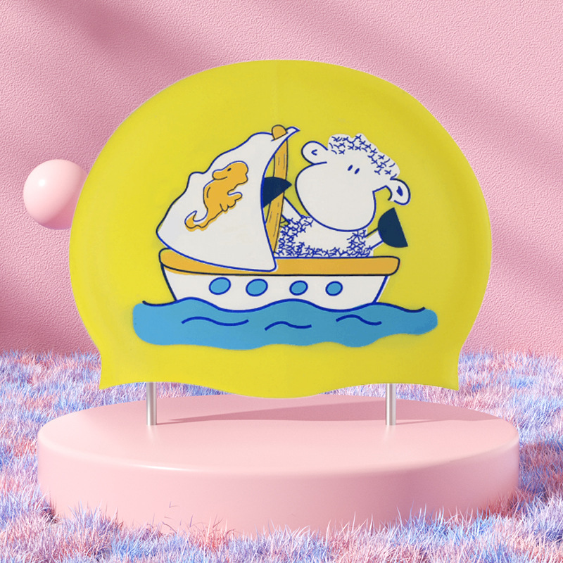 어린이 수영 모자 실리콘 만화 귀여운 다양한 색상 소형 중형 및 대형 어린이 긴 머리 귀 관리 헤어 케어 부드러운 수영 모자스토어 가기