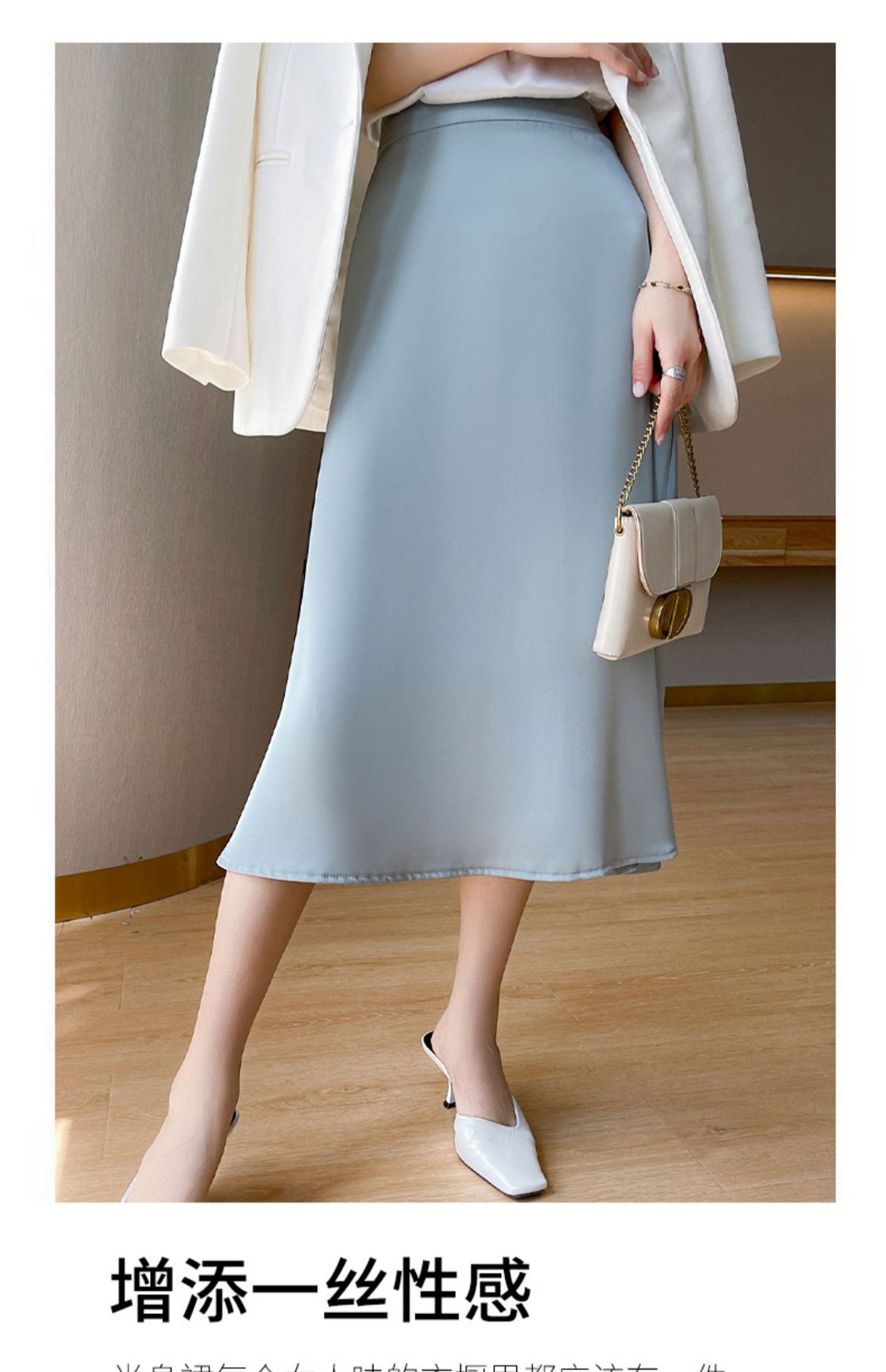 여성용 아세테이트 새틴 실크 스커트 23 새로운 높은 허리 A 라인 중간 길이 여름 패션 단색 올 매치 원피스스토어 가기