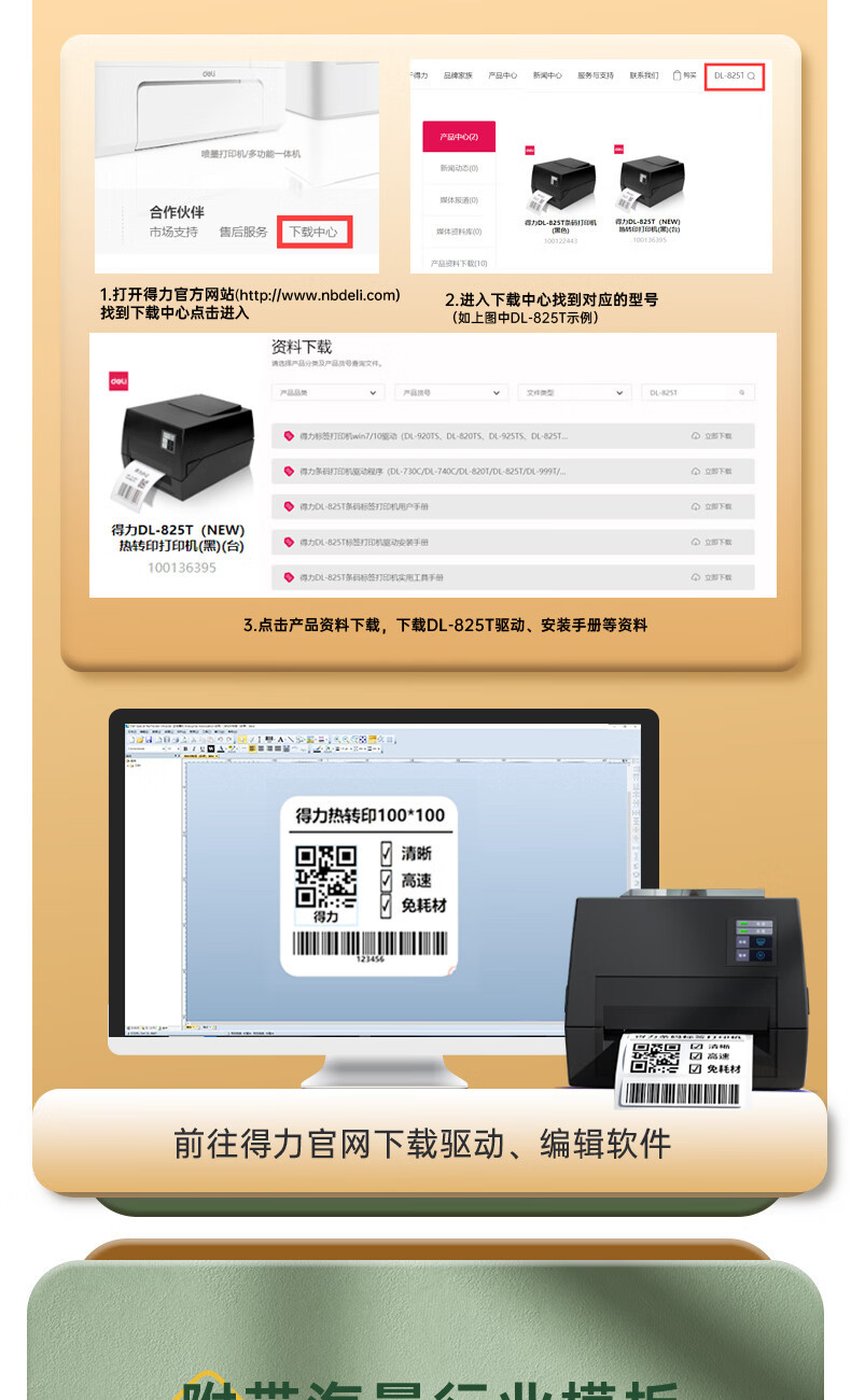 델리 825T 820T 고화질 열전사 프린터 스티커 라벨 고정자산 프린터