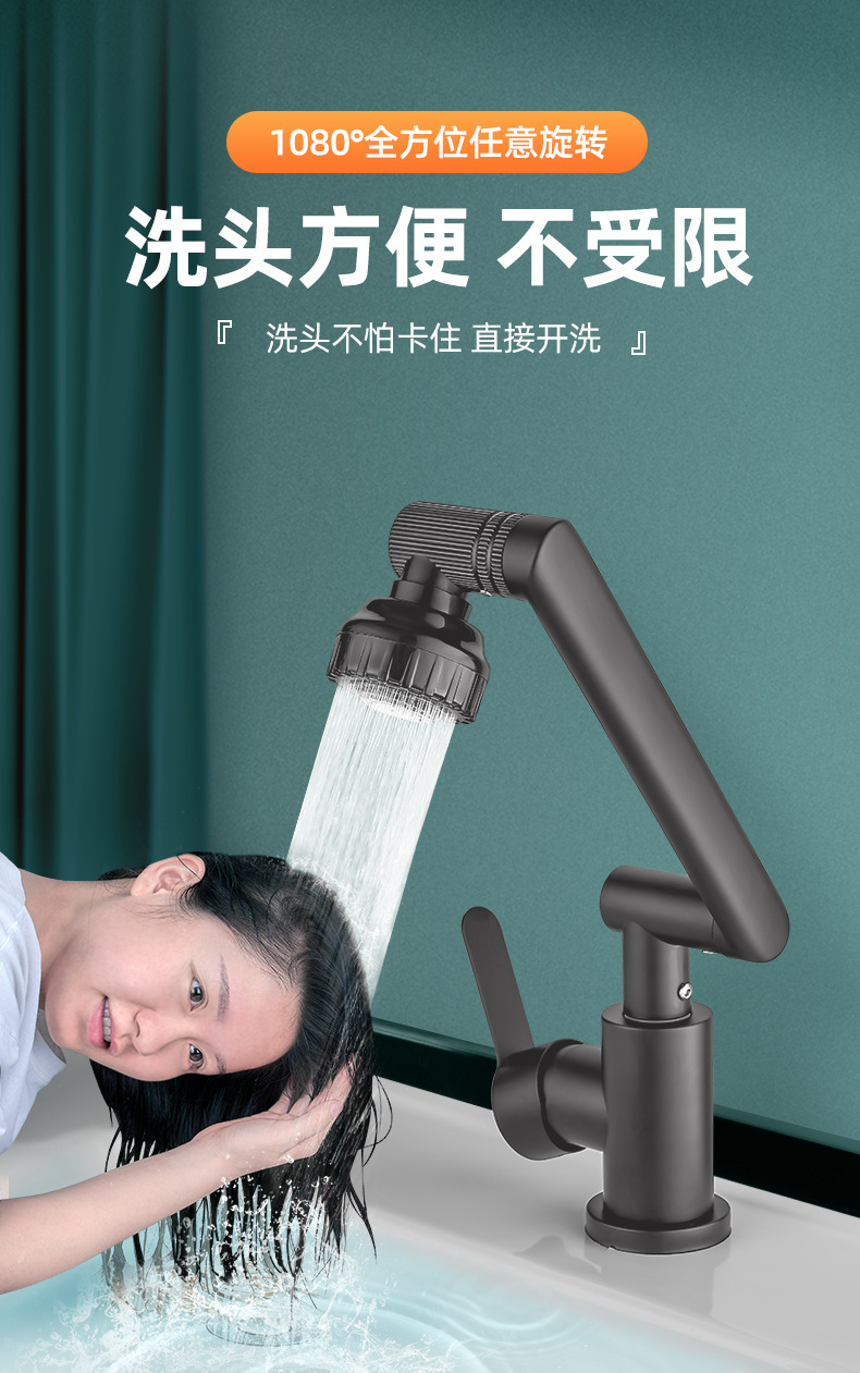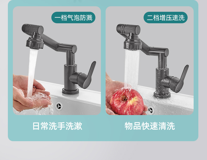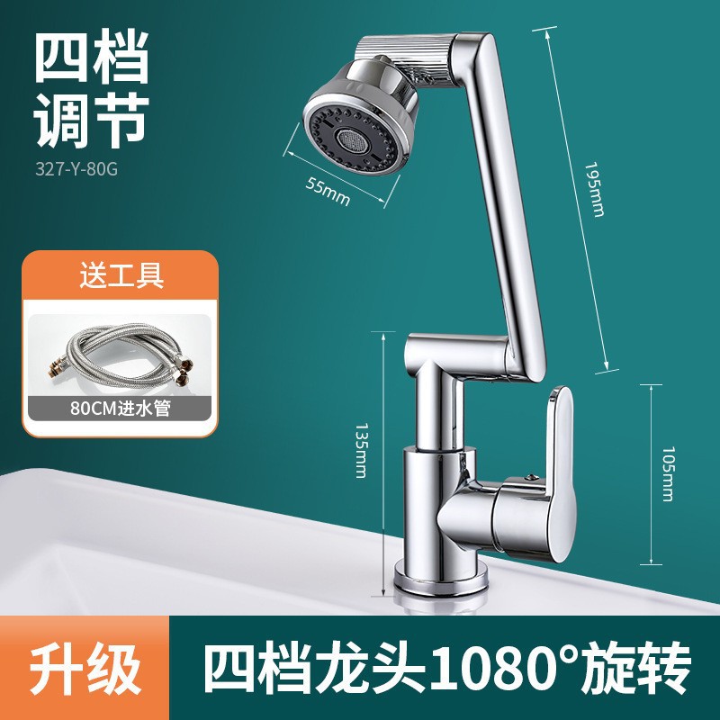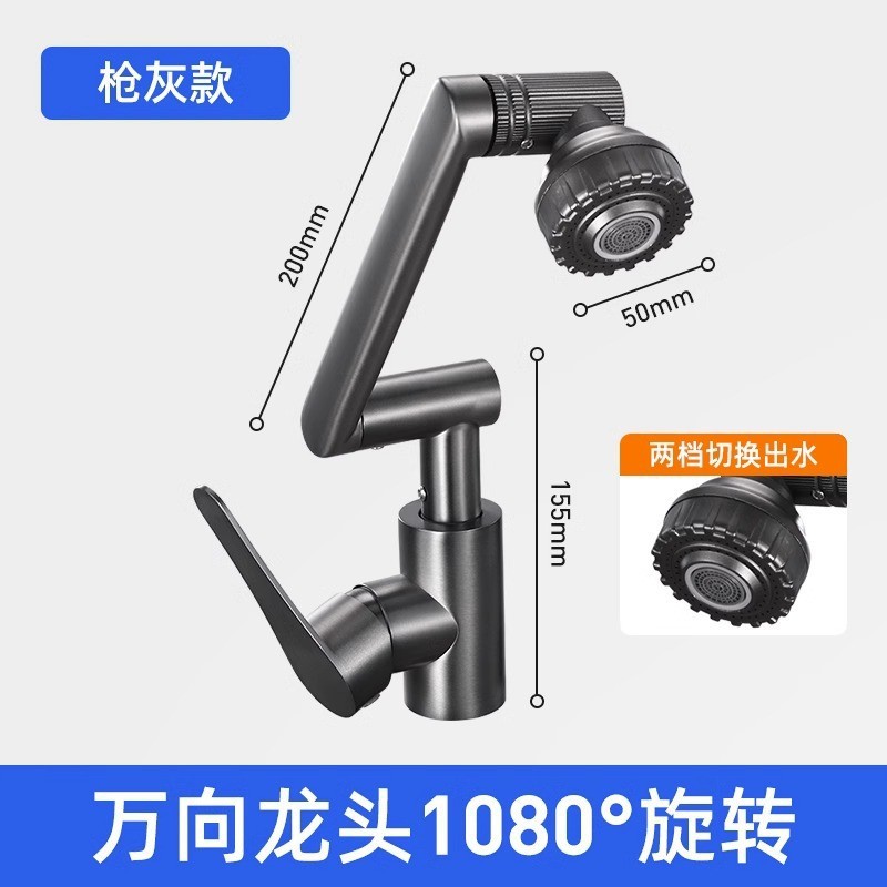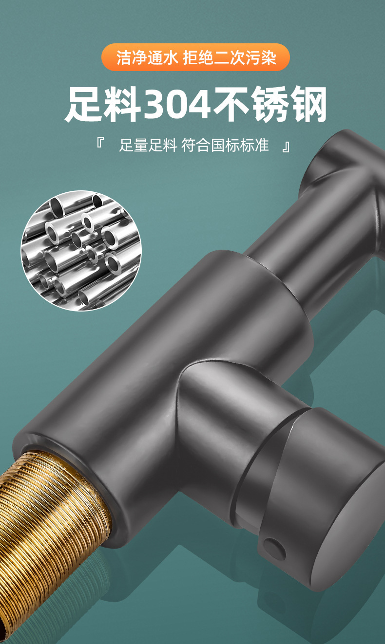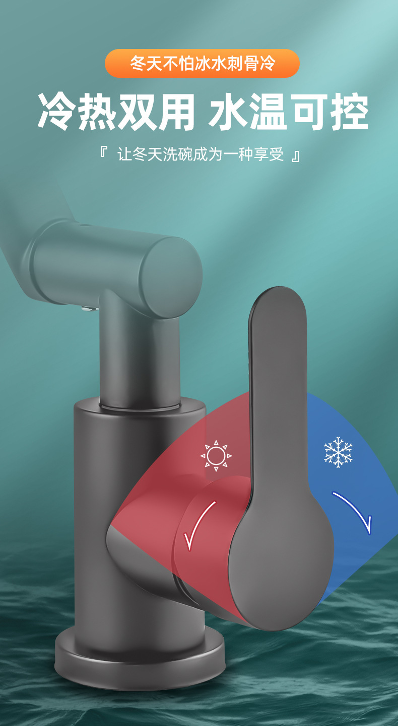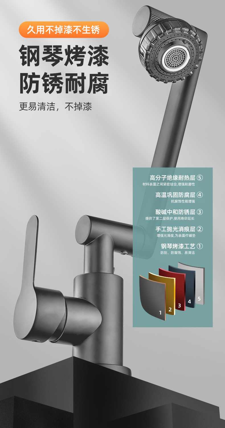 • 전체 황동 바디 건메탈 색상 - 4단계 분사 모드 업그레이드 - 냉온수 출수 + 60cm 급수 호스