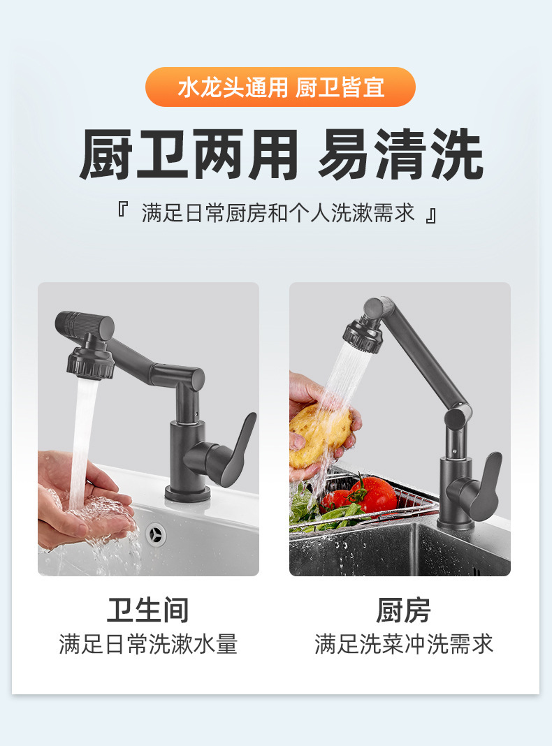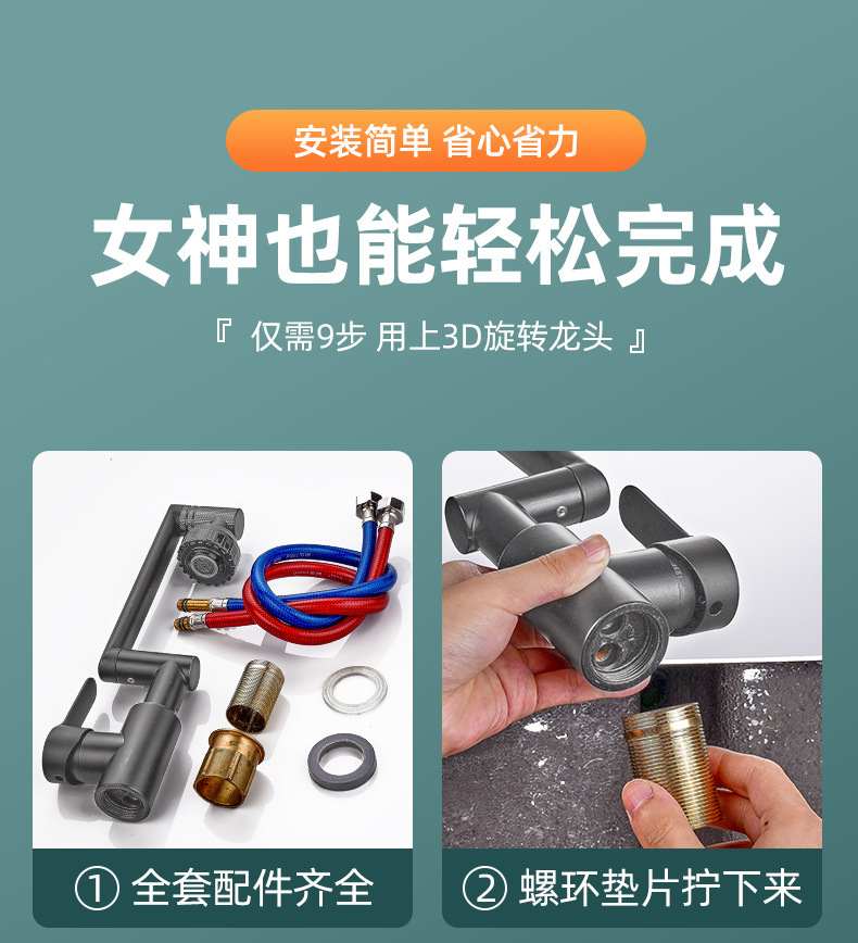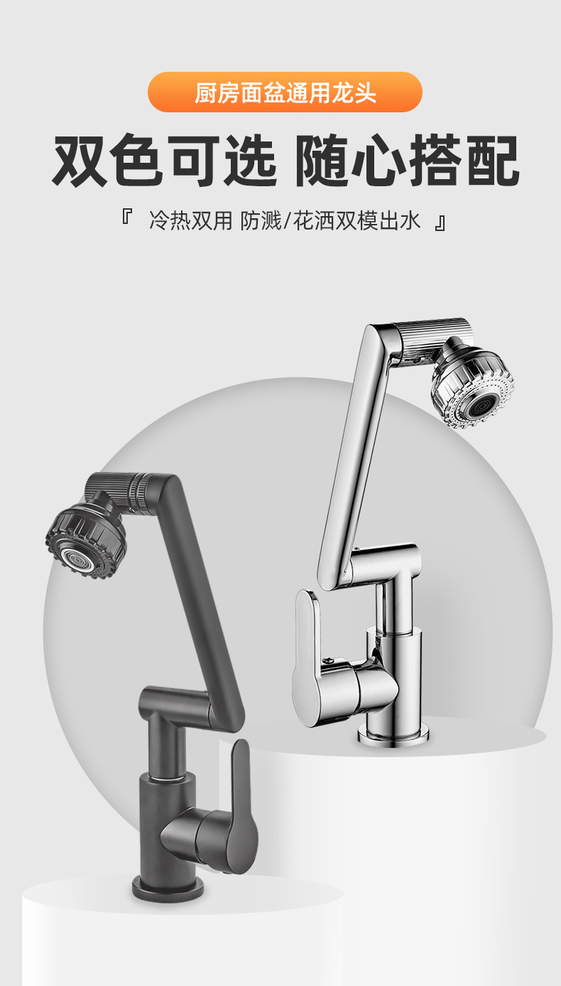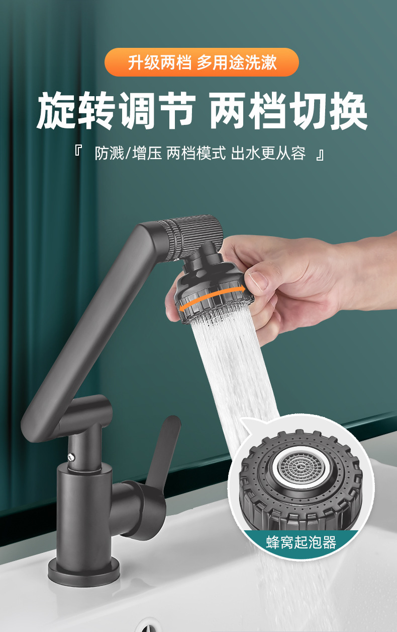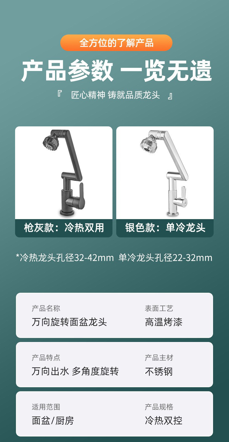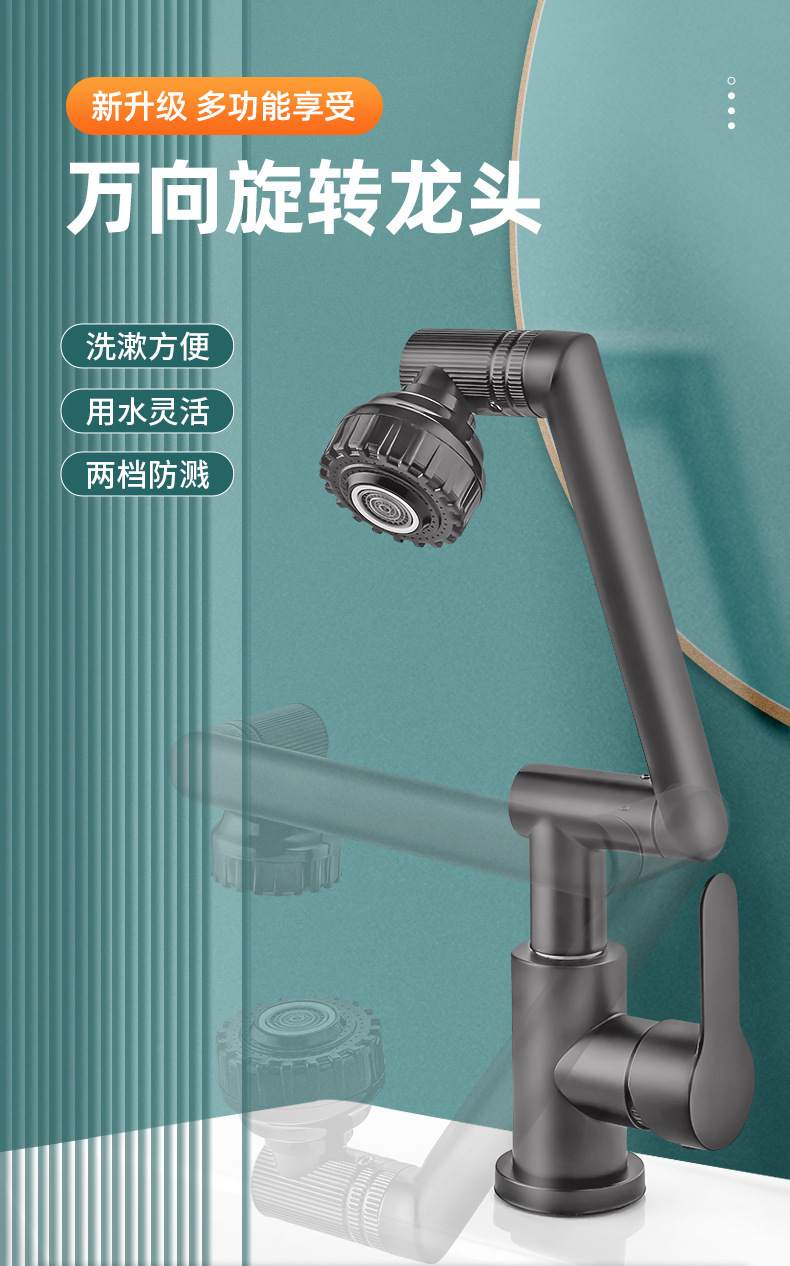 • 전체 황동 바디 건메탈 색상 - 4단계 분사 모드 업그레이드 - 냉온수 출수 + 60cm 급수 호스