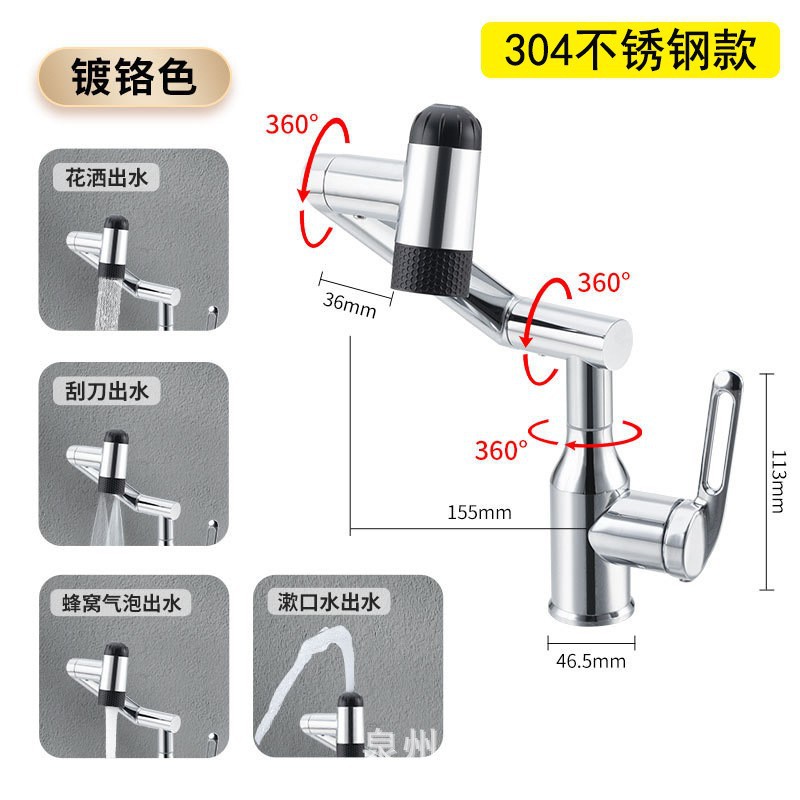 • 전체 구리 은색 - 업그레이드된 4단계 물 배출 모드 - 뜨거운 물과 차가운 물 배출구 + 60cm 물 유입 파이프