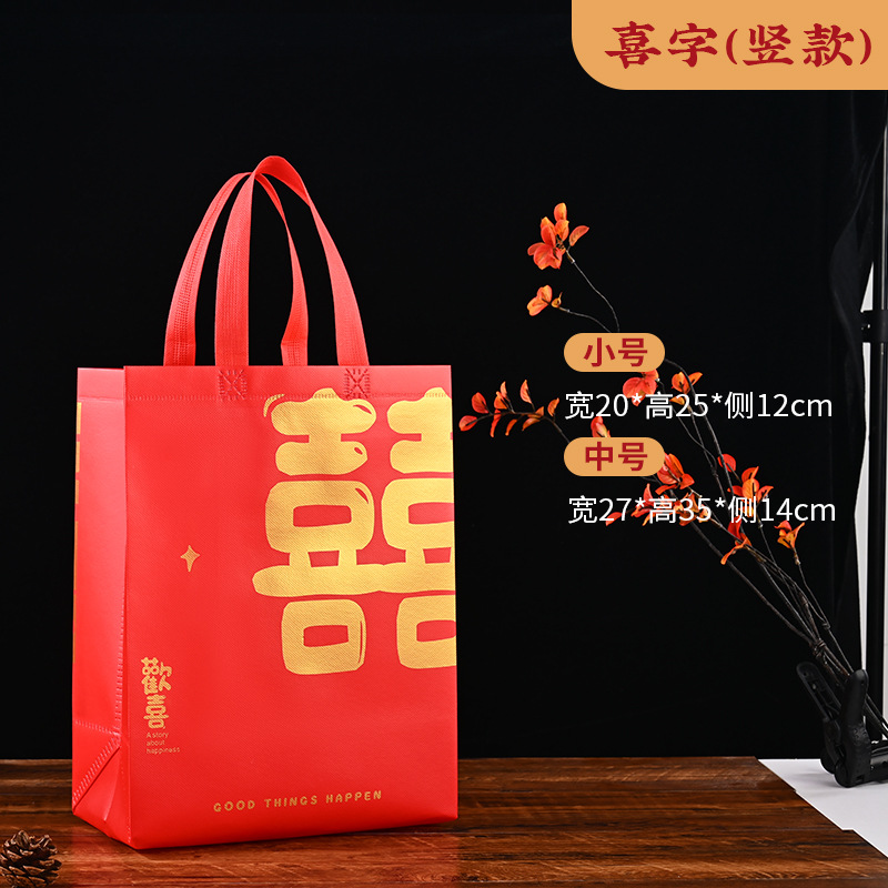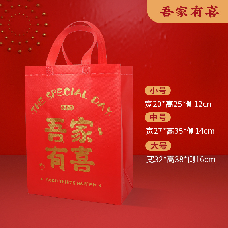 큰 빨간 부직포 가방 선물 가방 행복한 단어 가방 선물 가방 환경 보호 가방 쇼핑백 핸드백 다시 선물 가방스토어 가기