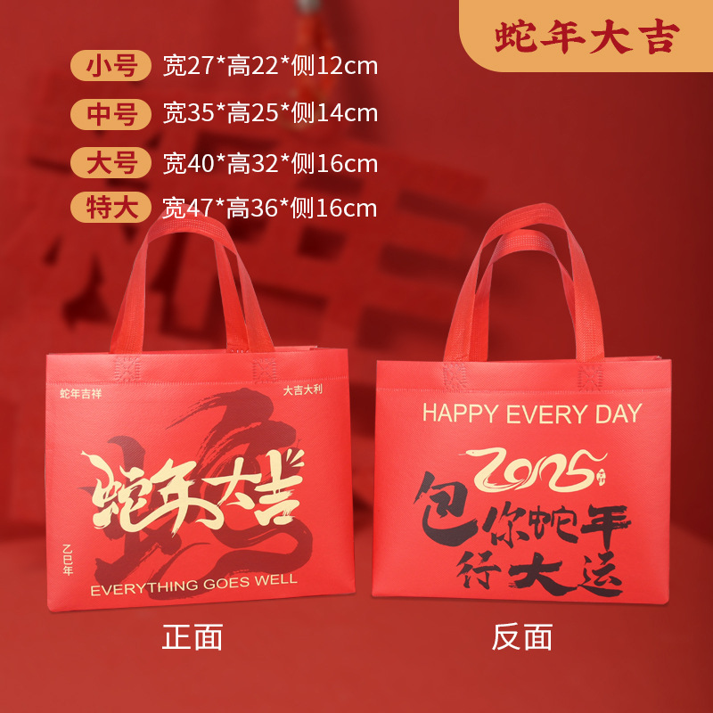 큰 빨간 부직포 가방 선물 가방 행복한 단어 가방 선물 가방 환경 보호 가방 쇼핑백 핸드백 다시 선물 가방