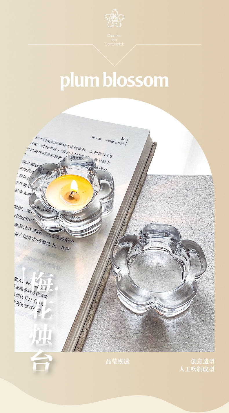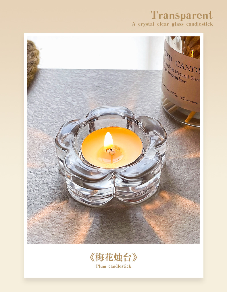 매화 꽃 투명 유리 캔들 홀더 촛불 저녁 식사 결혼식 레스토랑 장식 캔들 컵 야간 조명 캔들 라이트 유럽 스타일스토어 가기