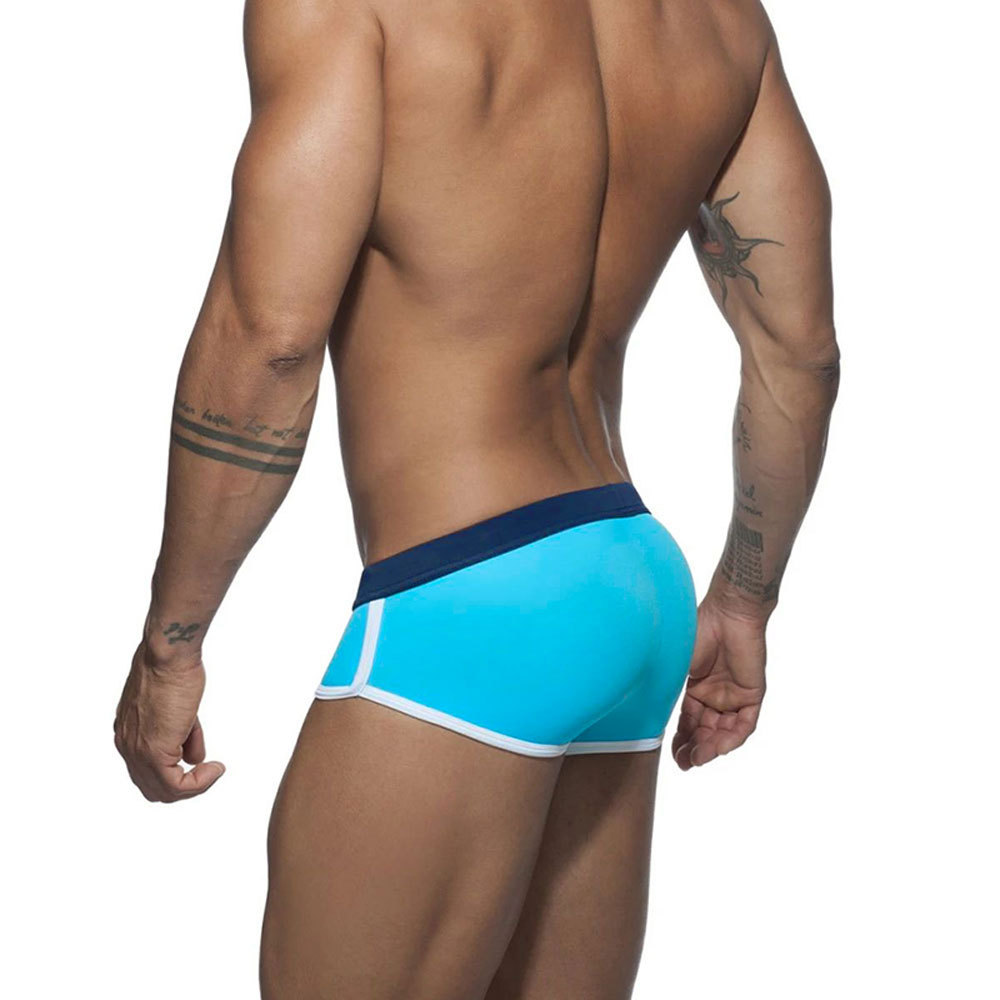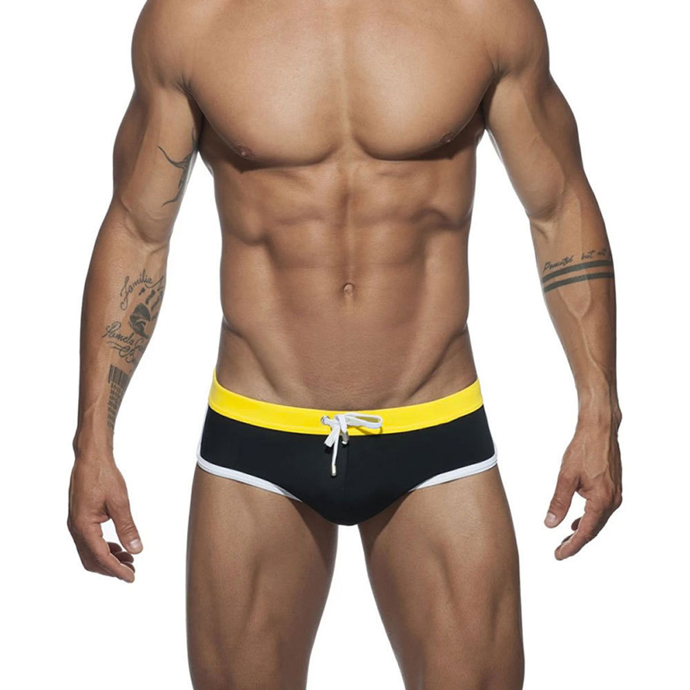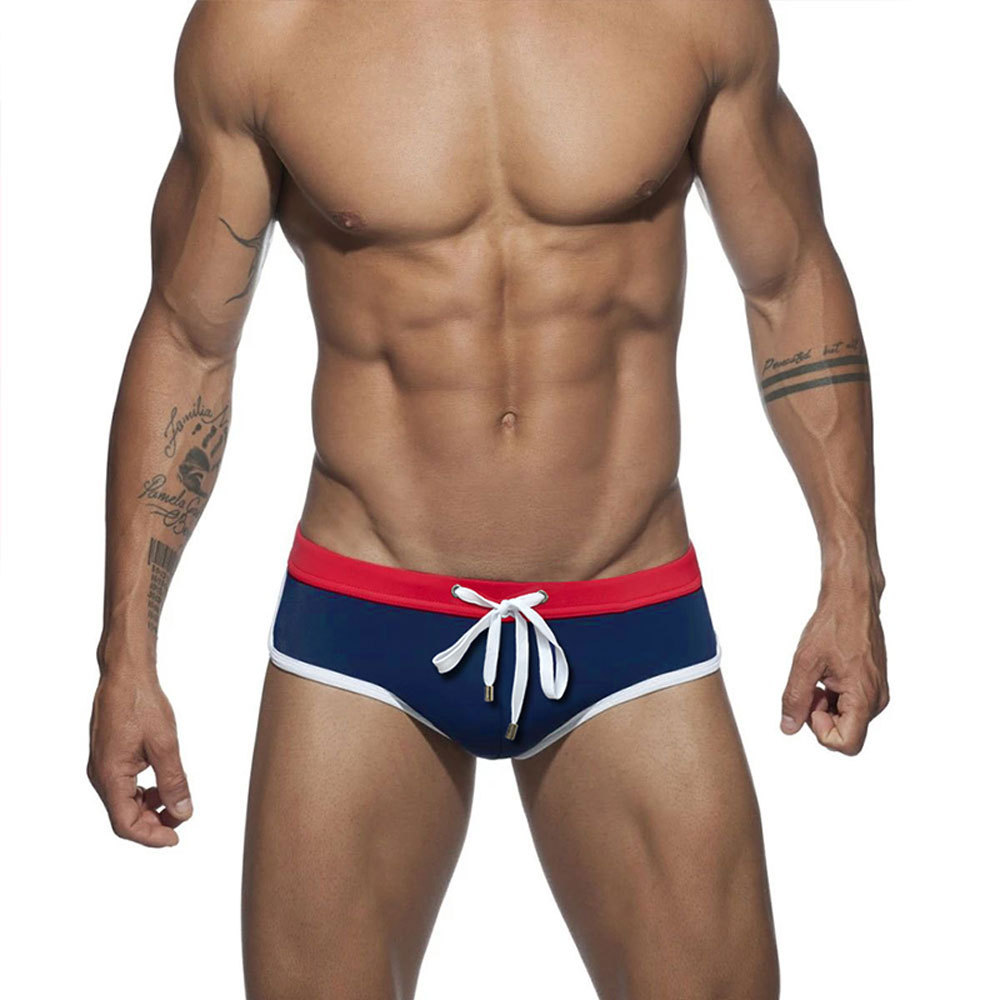 UXH 유럽 및 미국 남성 벨트 대비 삼각형 수영 트렁크 간단한 단색 크로스 국경 삼각형 수영 해변 비키니 남성스토어 가기