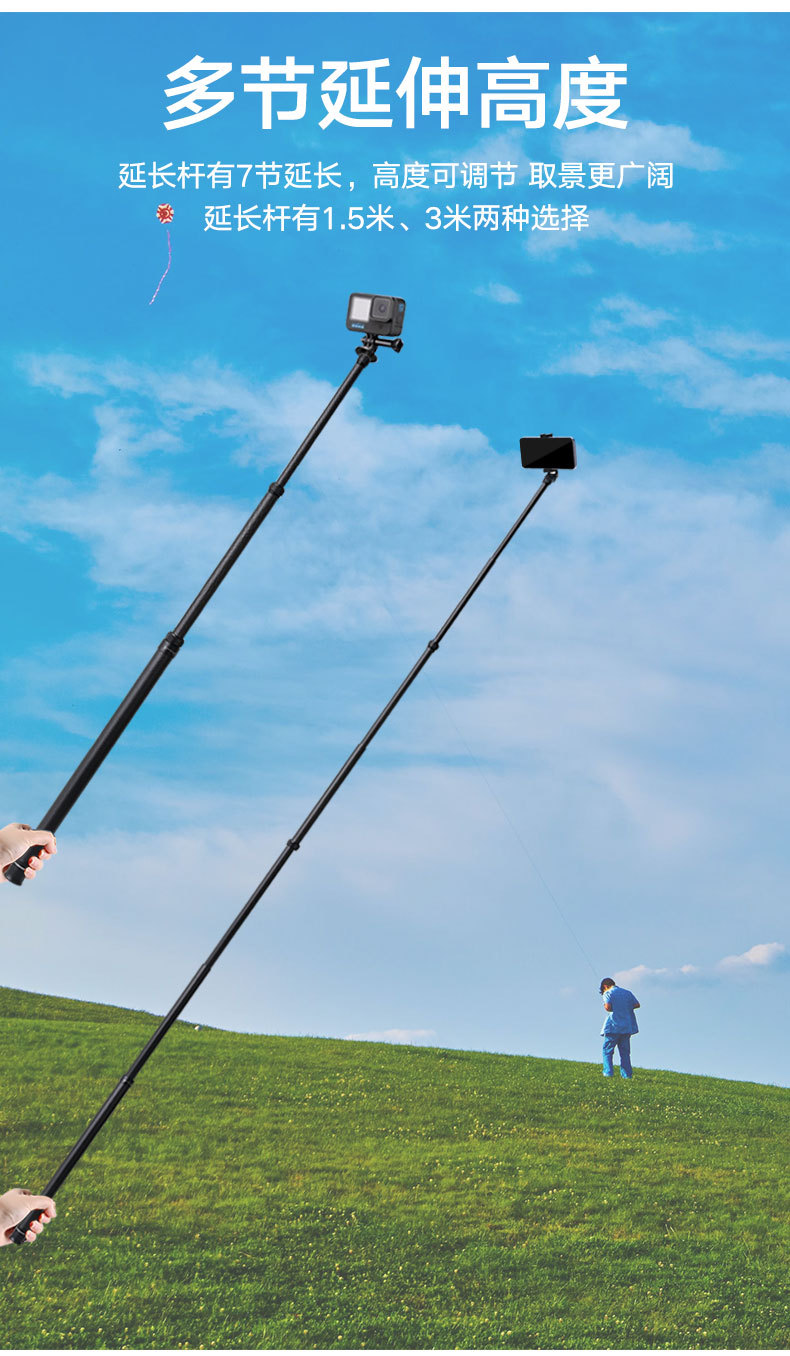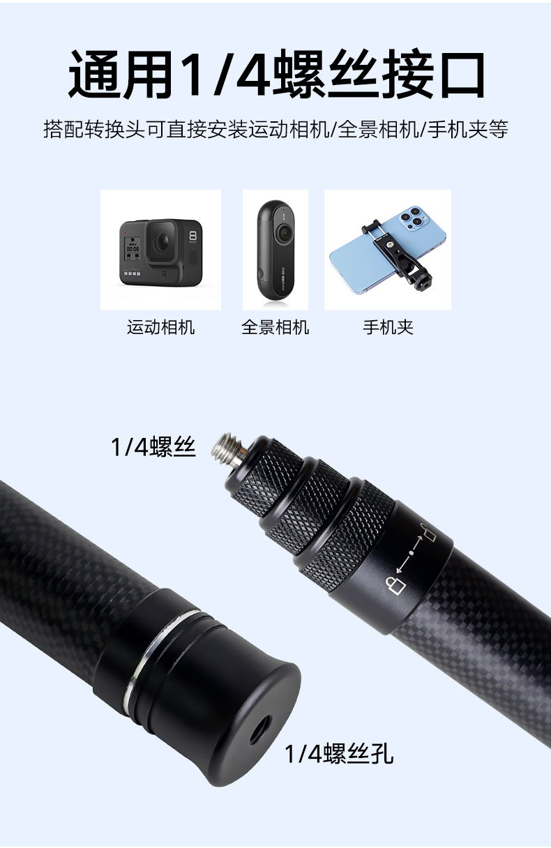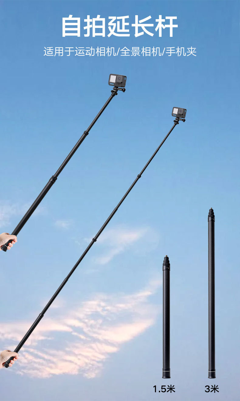 3 M 탄소 섬유 확장 셀카 스틱 텔레스코픽 Insta360 파노라마 스포츠 카메라 휴대 전화 눈 1.5스토어 가기