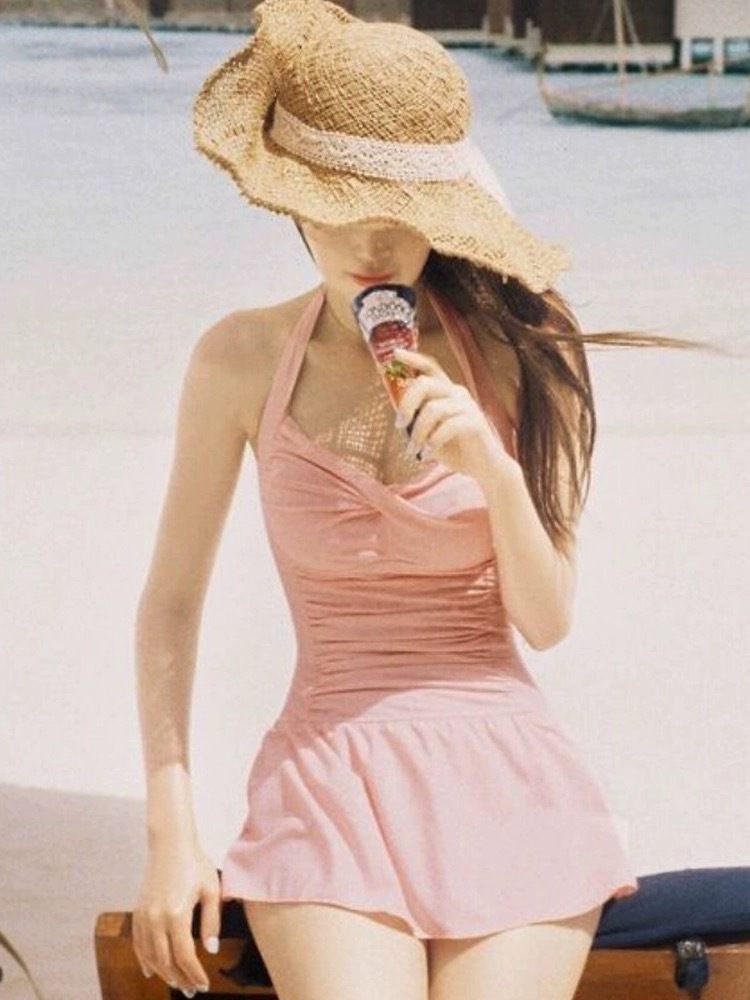 여성용 수영복 원피스 여름 순수한 욕망 스타일 2025 새로운 보수적 인 작은 가슴 스커트 스타일 배 커버 슬리밍 학생 비치 수영복