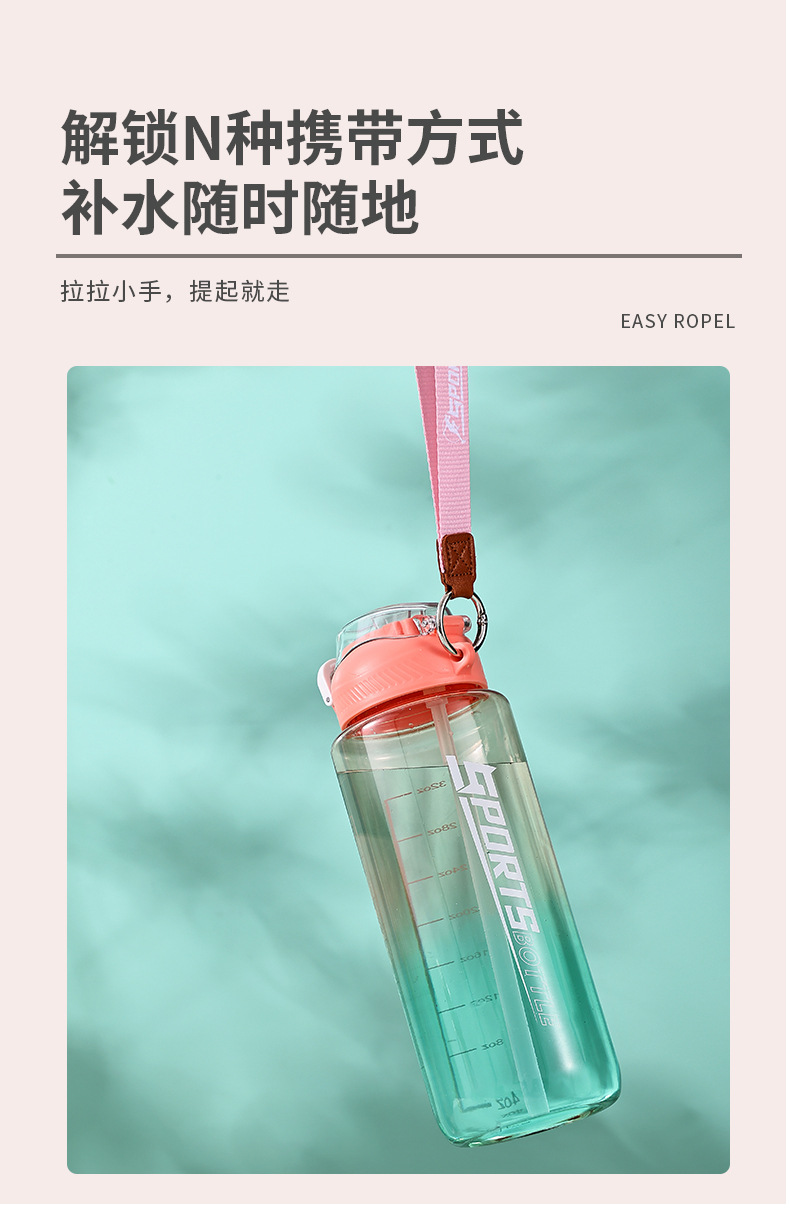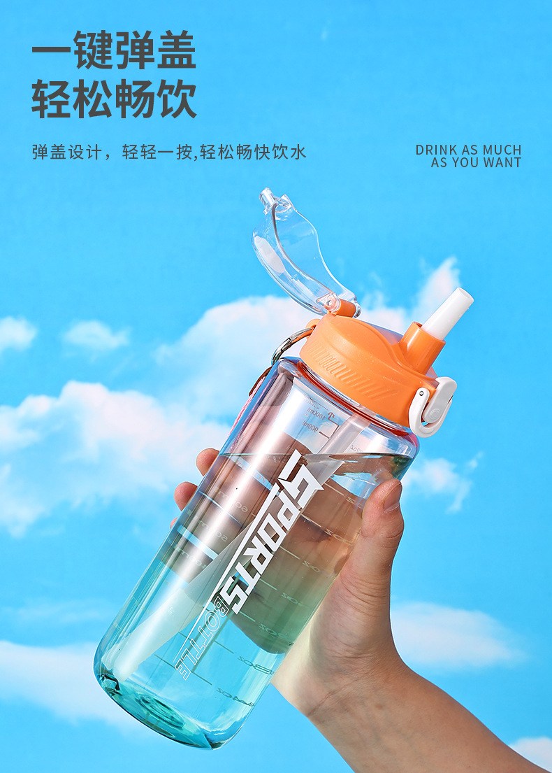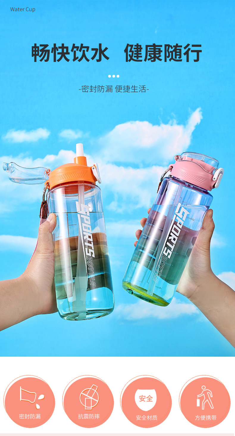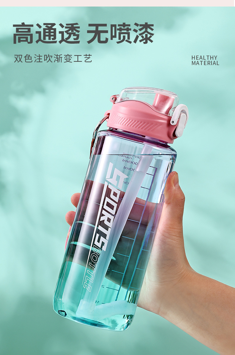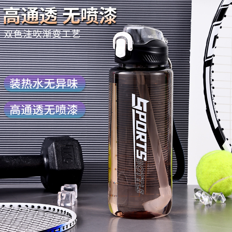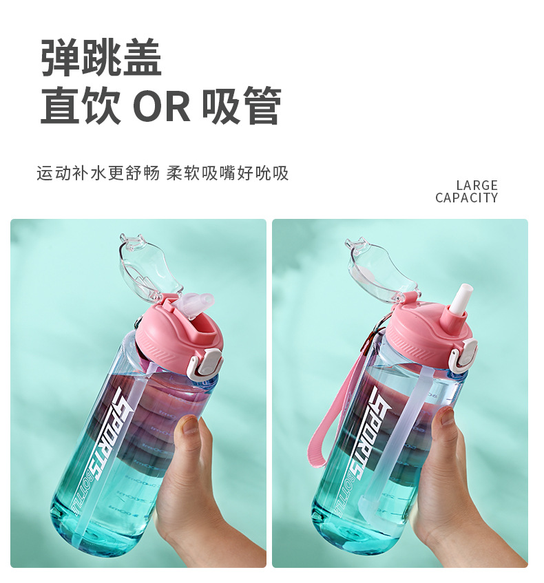 창의적인 새로운 디자인의 플라스틱 컵, 휴대용 플라스틱 물컵, 눈금 표시가 있는 대용량 스포츠 물병, 빨대가 있는 스페이스 컵