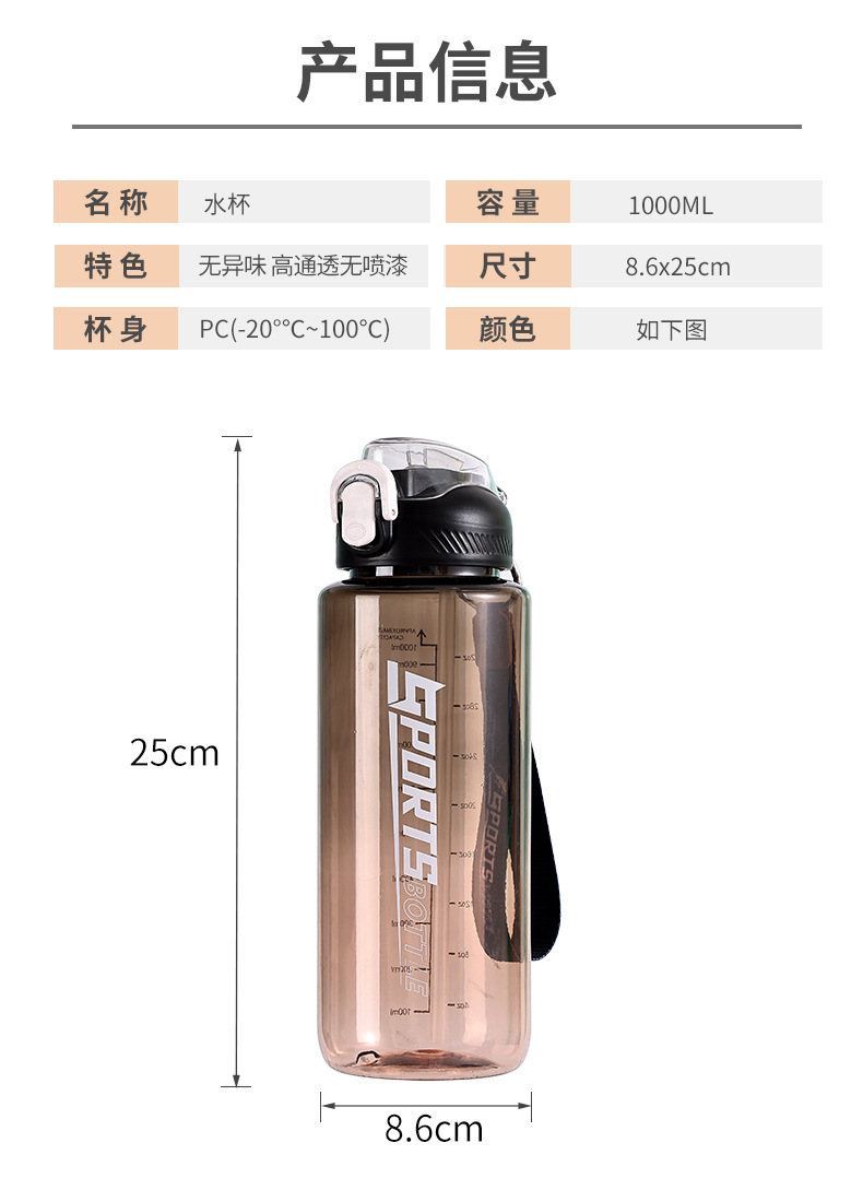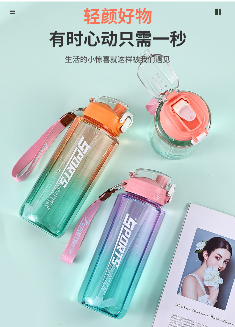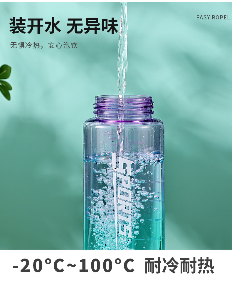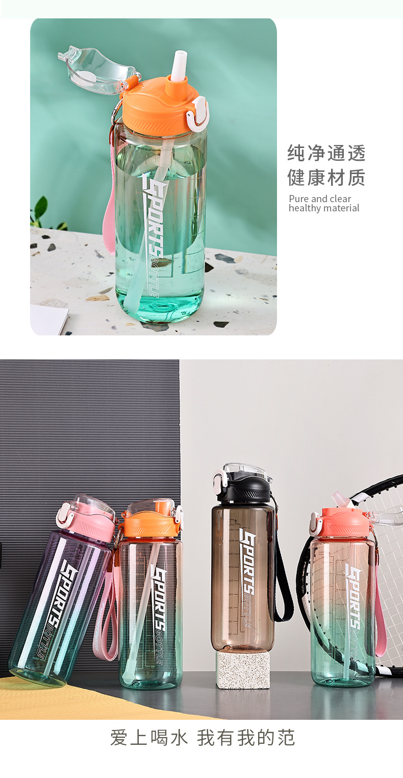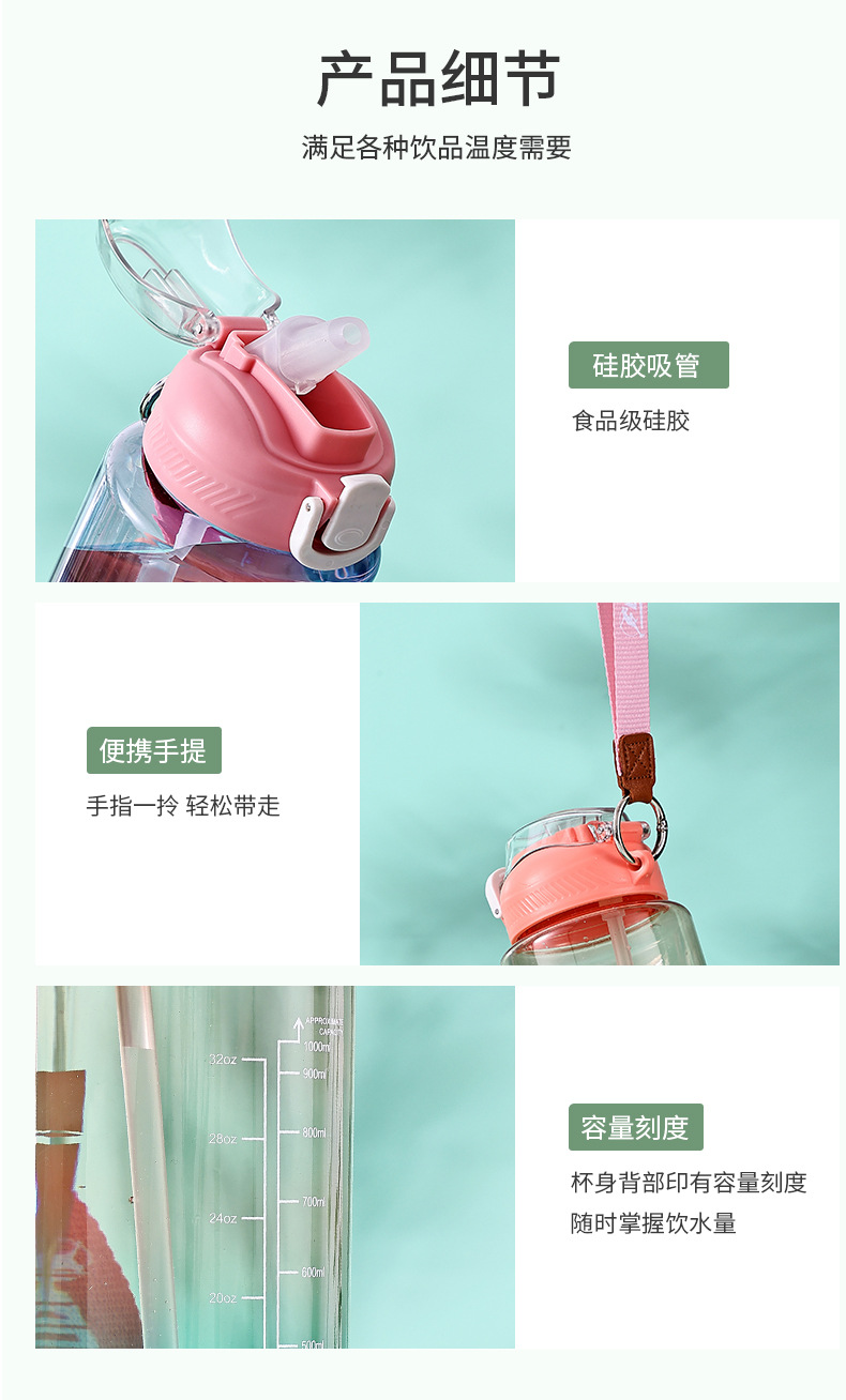 창의적인 새로운 디자인의 플라스틱 컵, 휴대용 플라스틱 물컵, 눈금 표시가 있는 대용량 스포츠 물병, 빨대가 있는 스페이스 컵