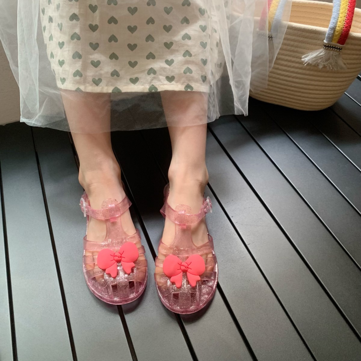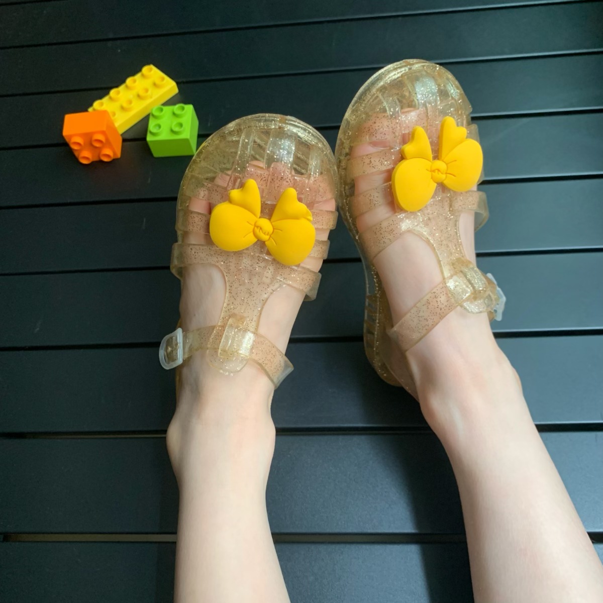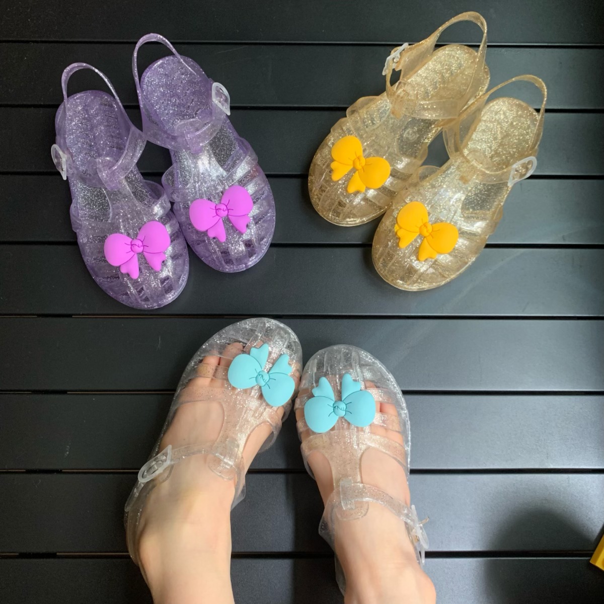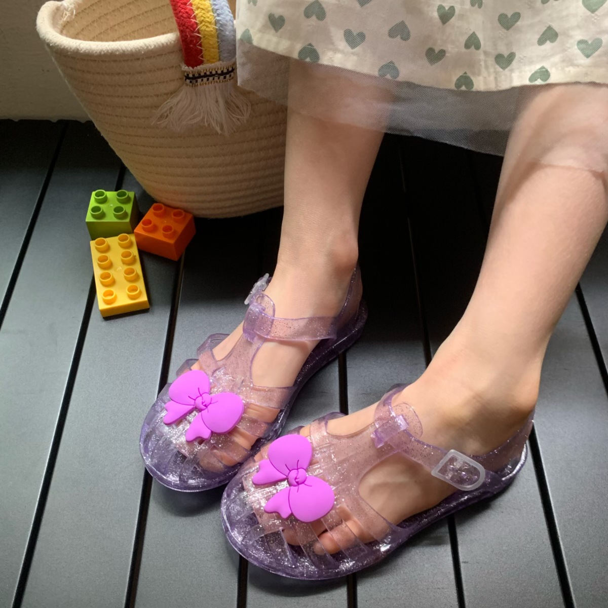 여름 새로운 젤리 신발 작은 공주 크리스탈 신발 부드러운 밑창 편안한 발가락 방수 패션 대비 색상 활 샌들