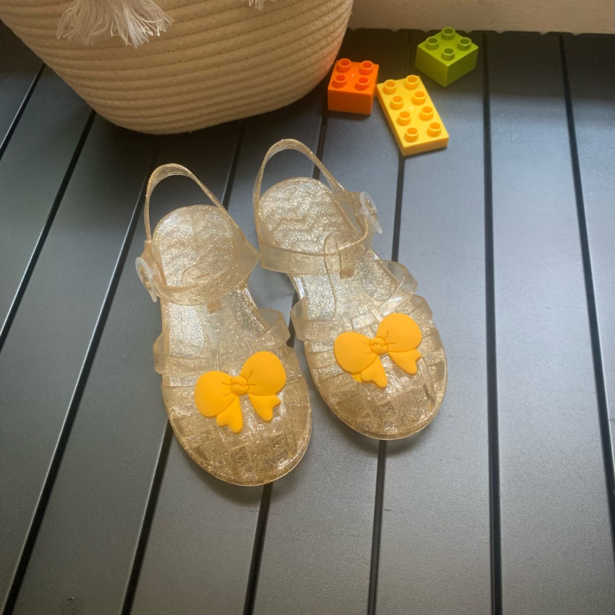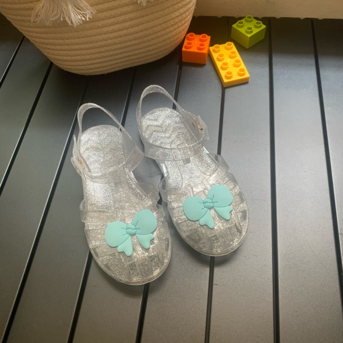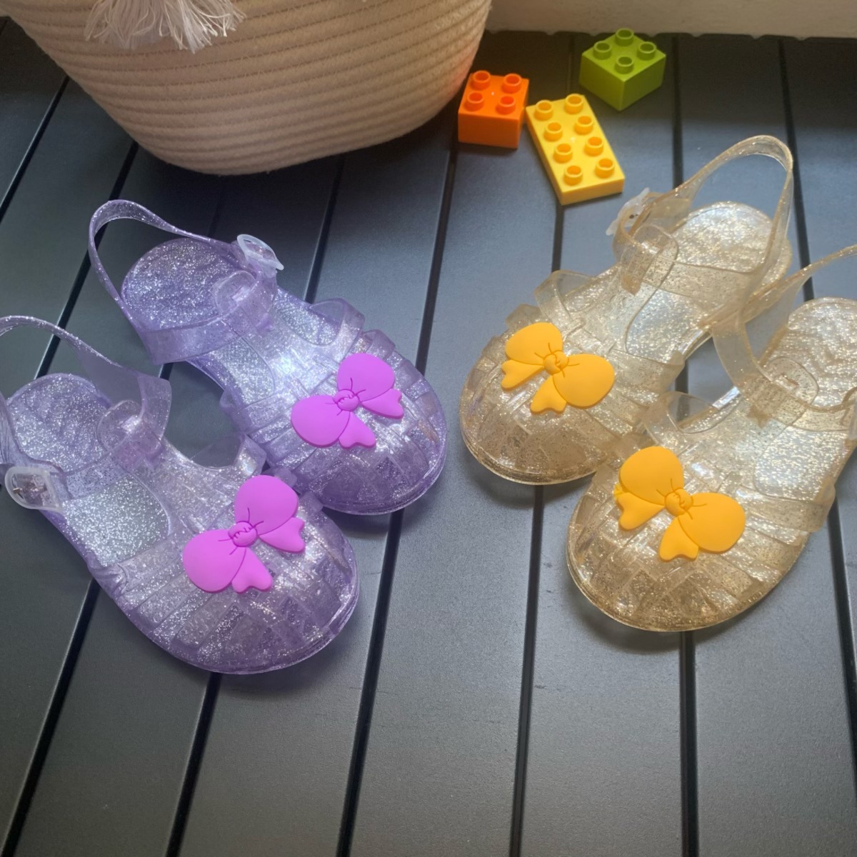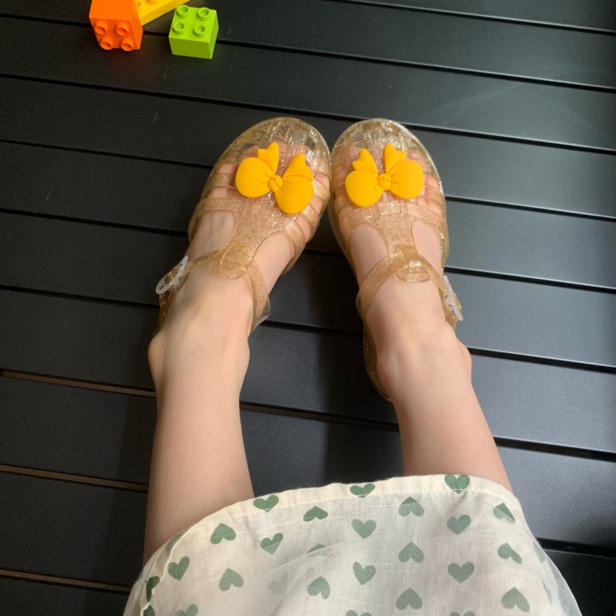 여름 새로운 젤리 신발 작은 공주 크리스탈 신발 부드러운 밑창 편안한 발가락 방수 패션 대비 색상 활 샌들