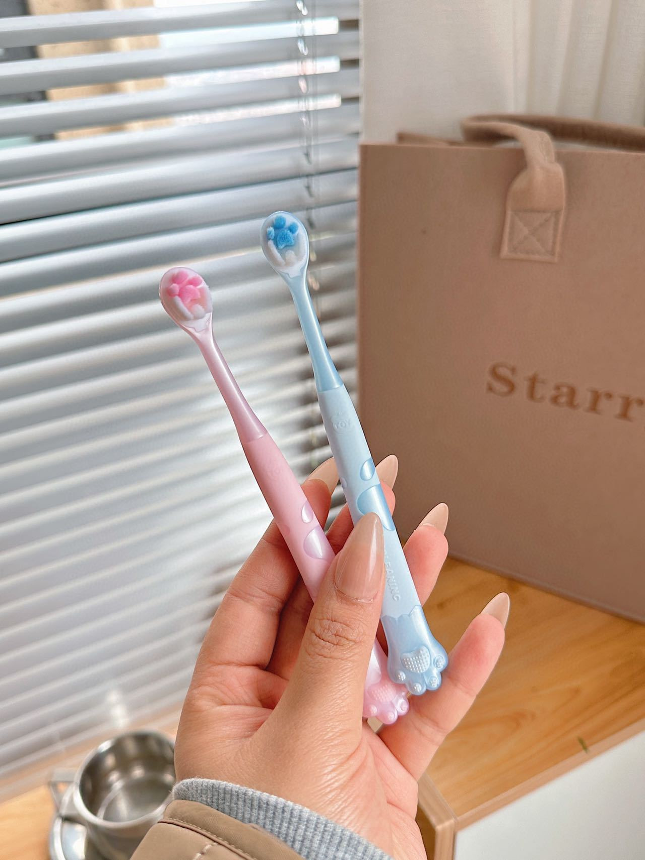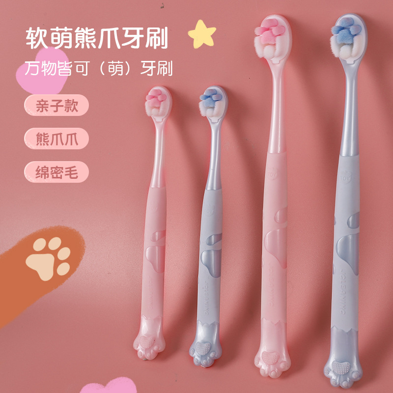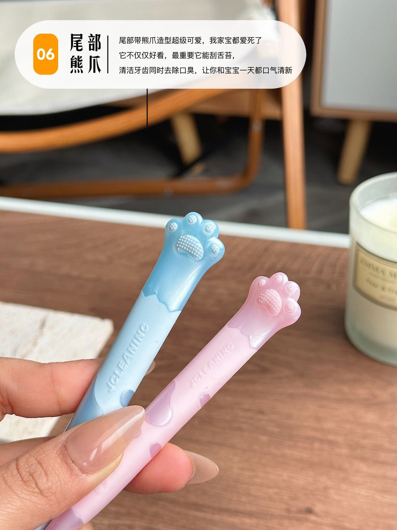고양이 발바닥 모양 어린이 칫솔 개별 포장 아기 부모 자녀 성인용 혀 클리너 부드러운 모 고급 칫솔 도매