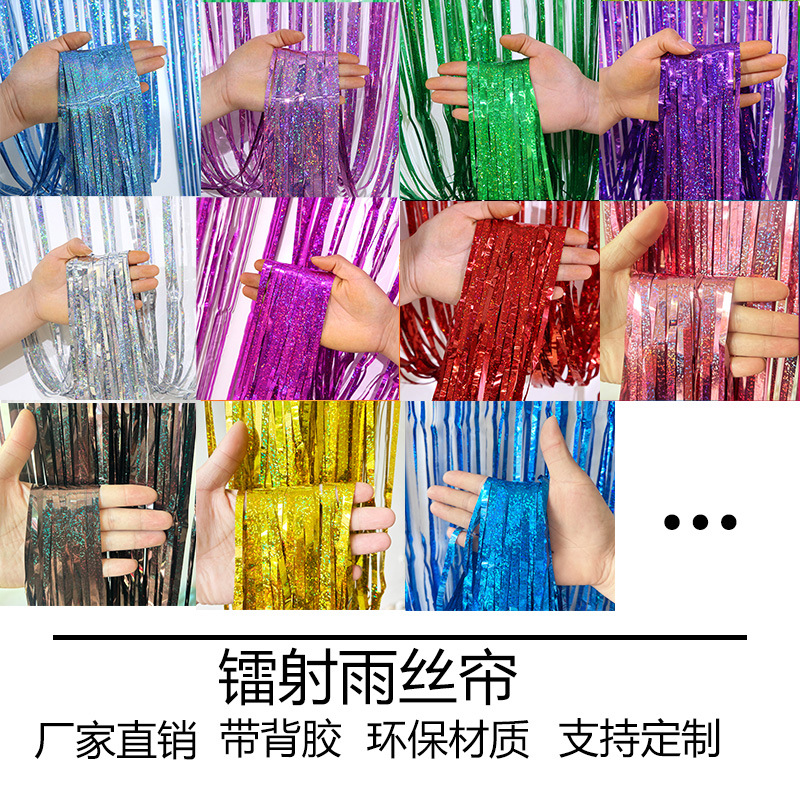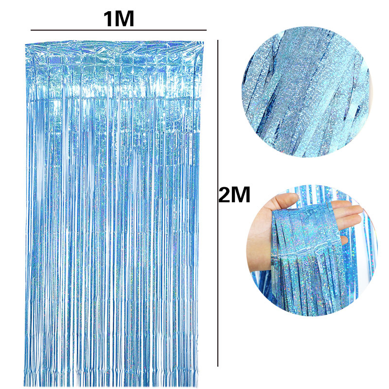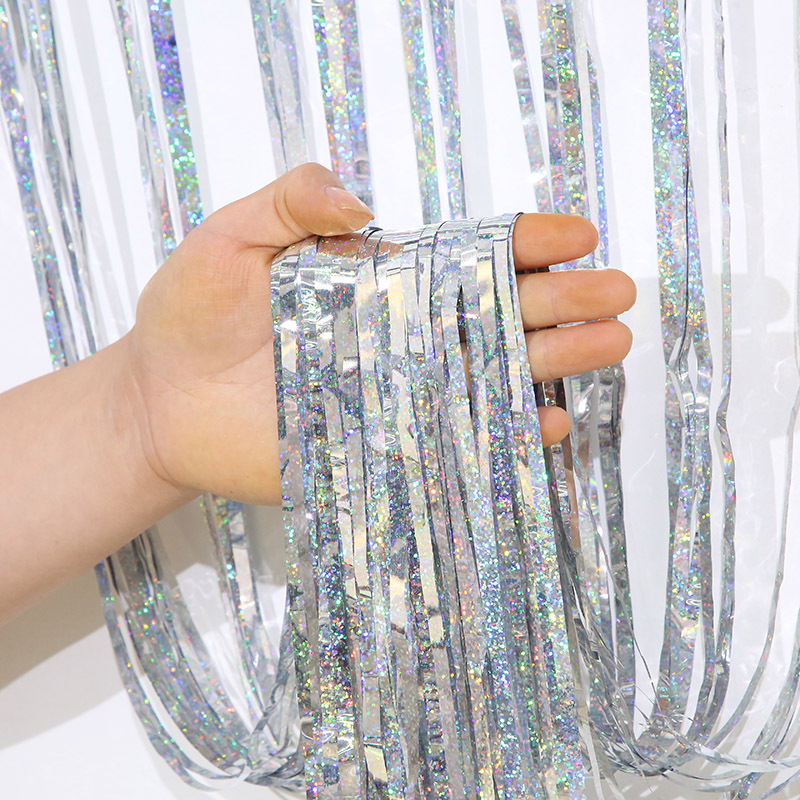 1x2 미터 레이저 비 실크 커튼 생일 파티 배경 장식 소품 술 문 커튼 배경 벽 도매