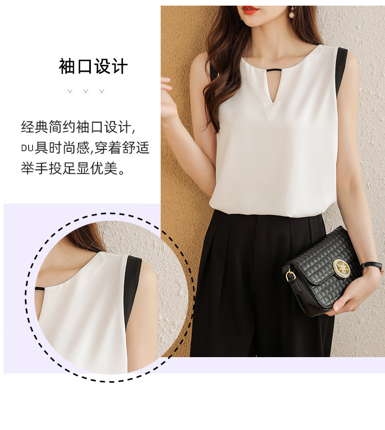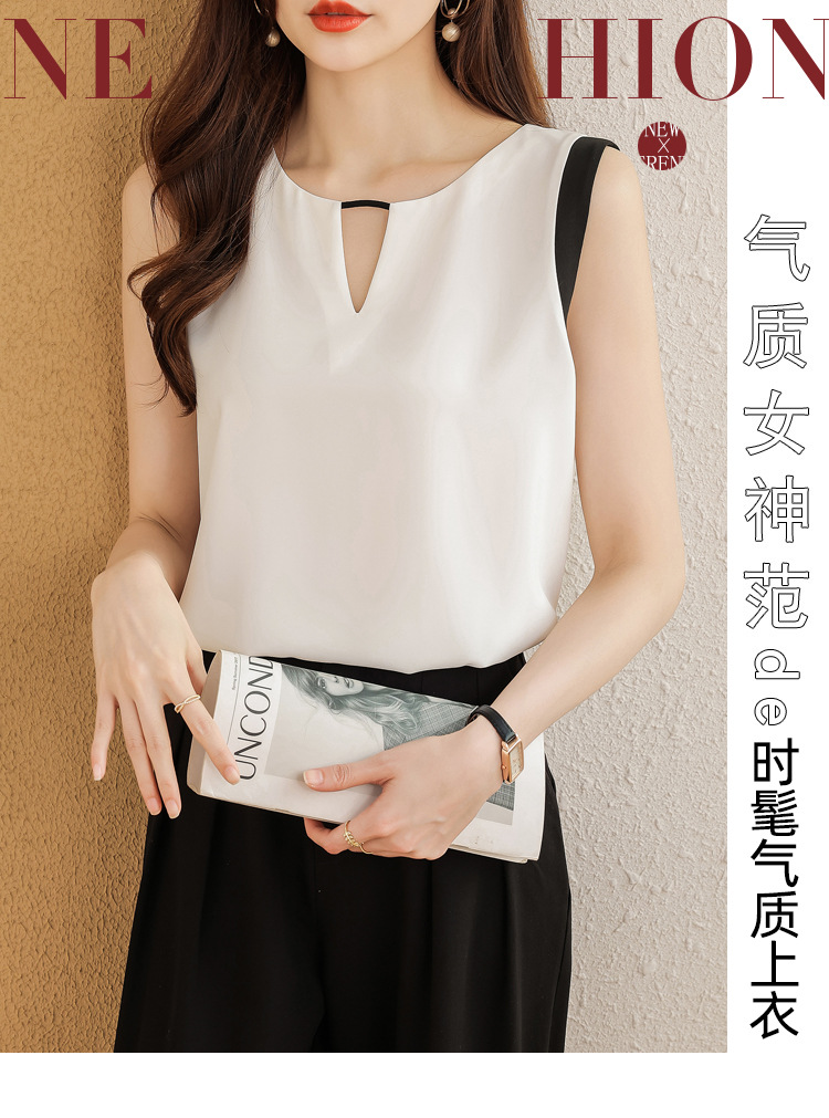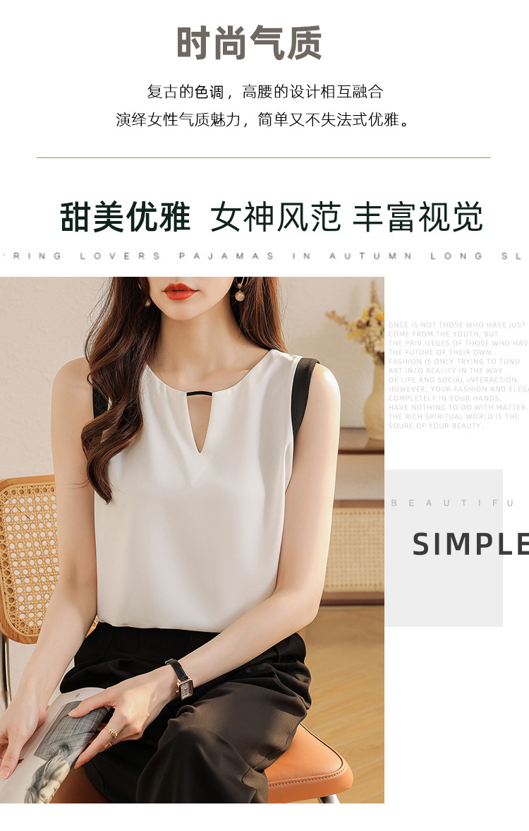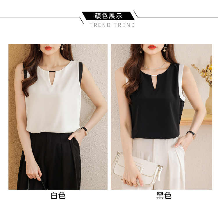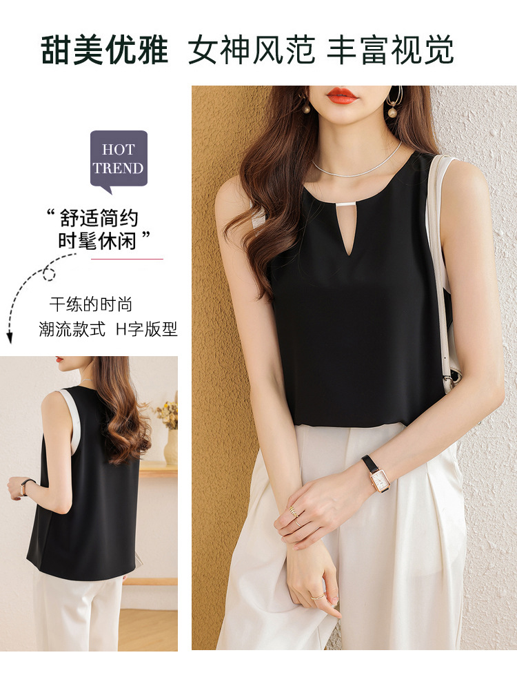 2023 여름 새로운 스티치 디자인 센스 민소매 느슨한 슬림 쉬폰 셔츠 여성용 스트랩 내부 착용 조끼 도매스토어 가기