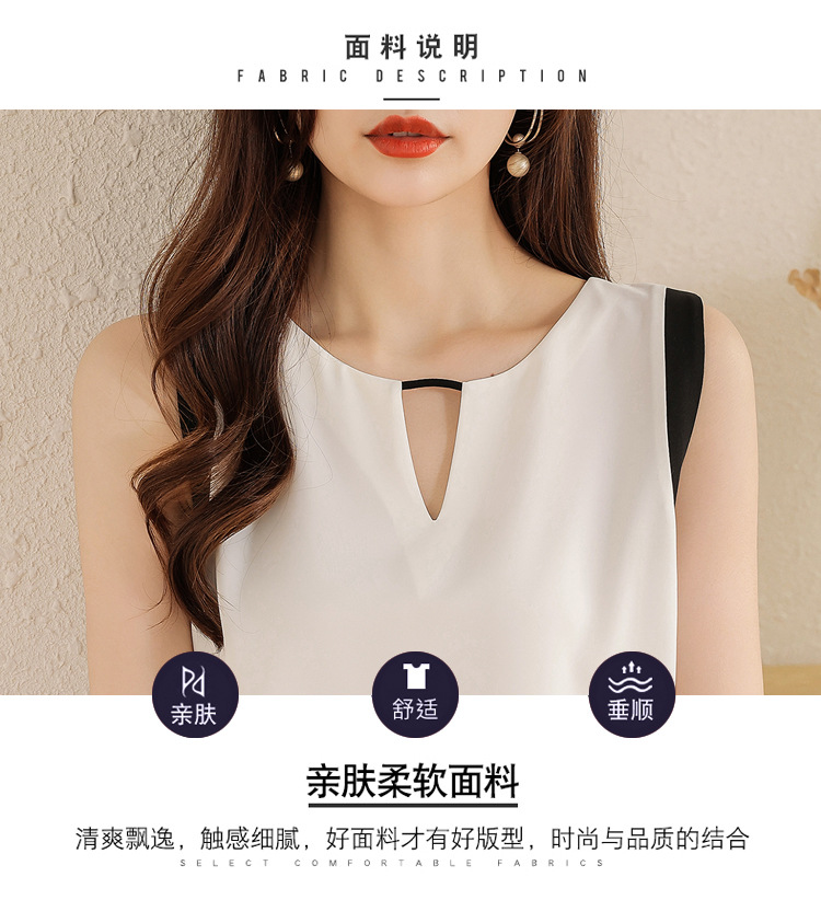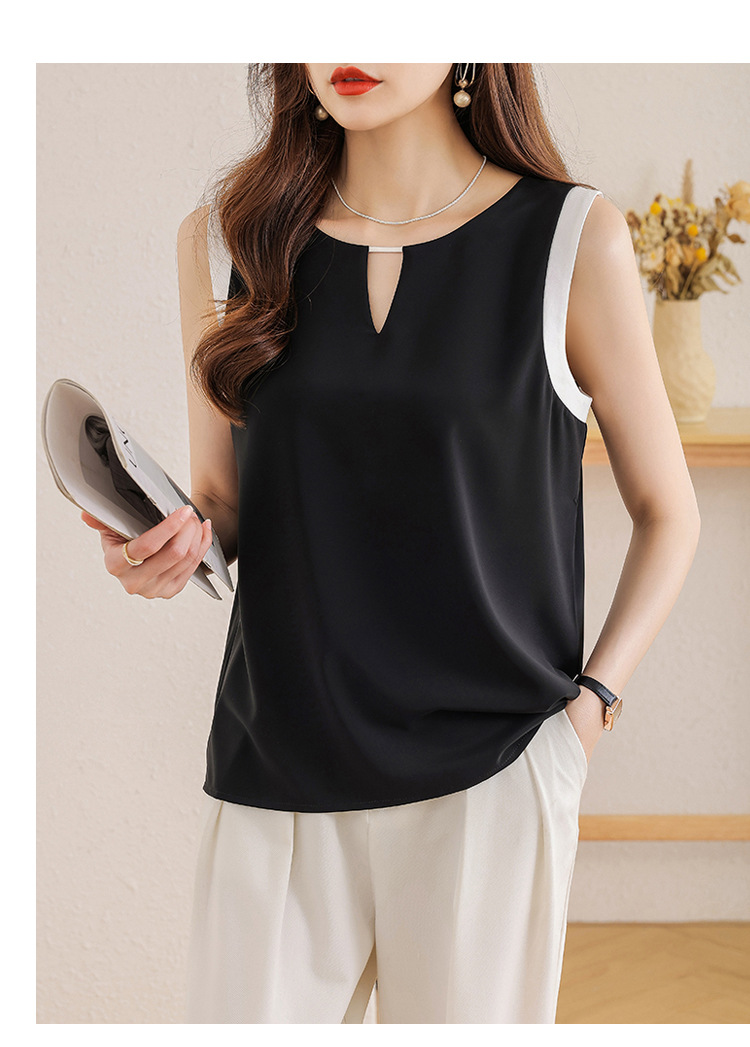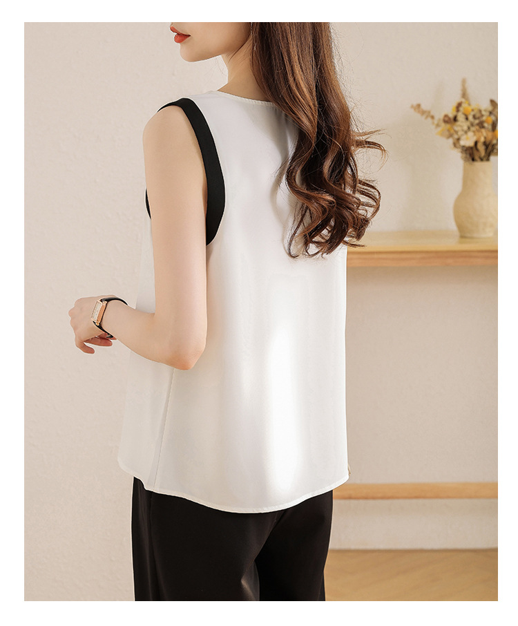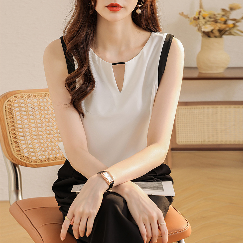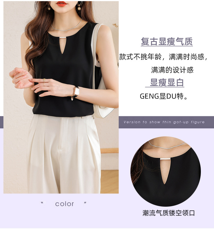 2023 여름 새로운 스티치 디자인 센스 민소매 느슨한 슬림 쉬폰 셔츠 여성용 스트랩 내부 착용 조끼 도매스토어 가기