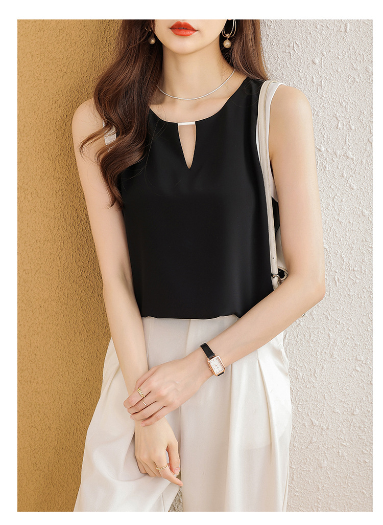 2023 여름 새로운 스티치 디자인 센스 민소매 느슨한 슬림 쉬폰 셔츠 여성용 스트랩 내부 착용 조끼 도매