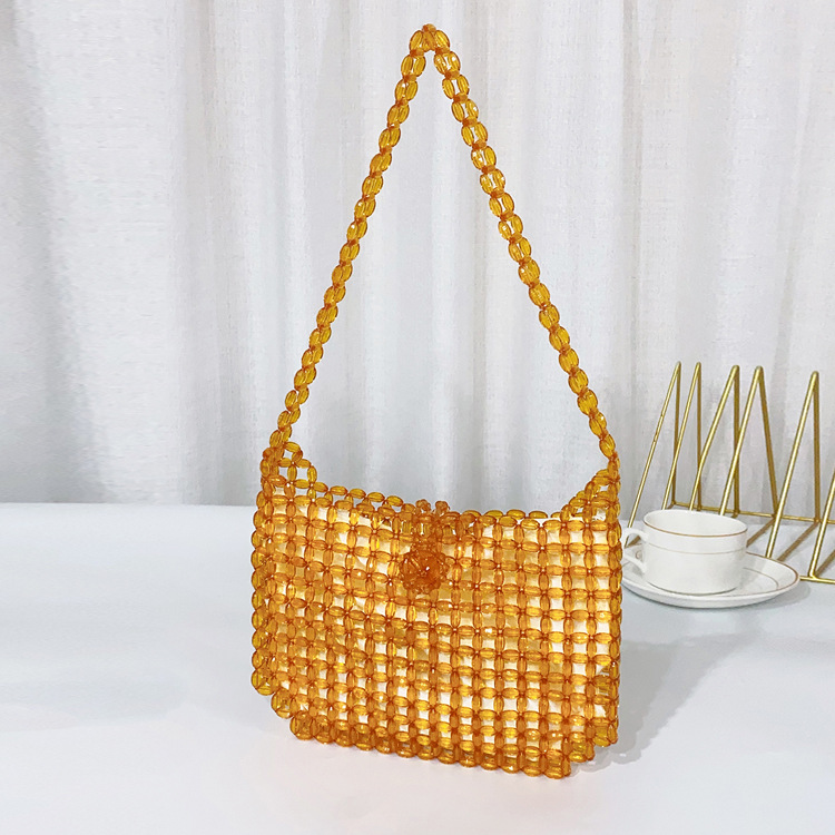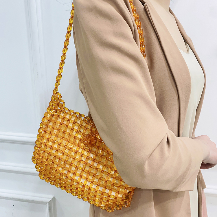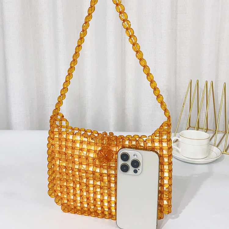 새로운 도시 간단한 스타일 오렌지 아크릴 쌀 중공 숄더백 수제 DIY 페르시 숄더백스토어 가기