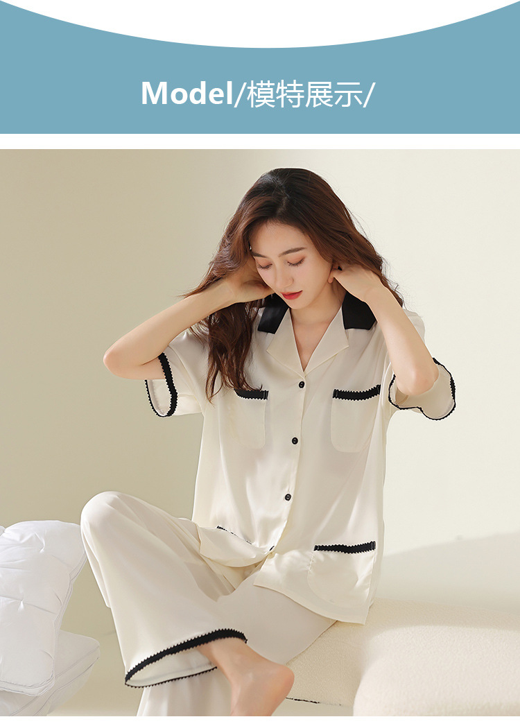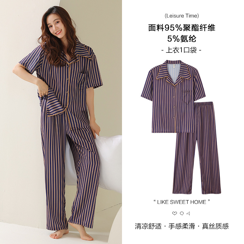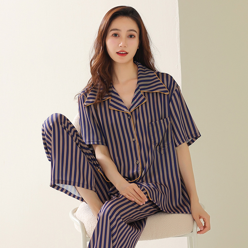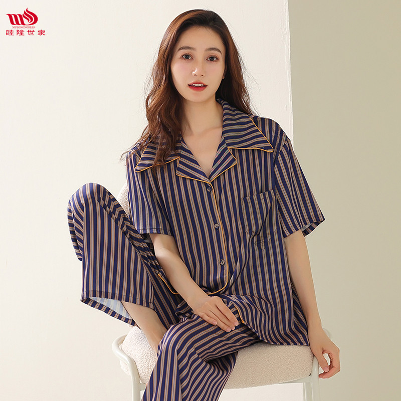 물롱 귀족 가족 아이스 실크 잠옷 여름 얇은 반팔 바지 새로운 여름 실크 같은 가정복 투피스 세트스토어 가기